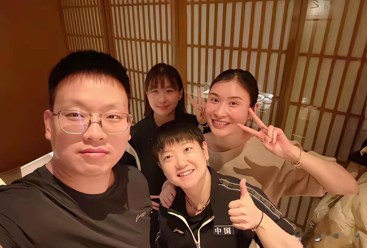 不忘初心:孙颖莎和河北队友跨年夜相聚! 队友发布的一张照片显示:莎莎和河北队的