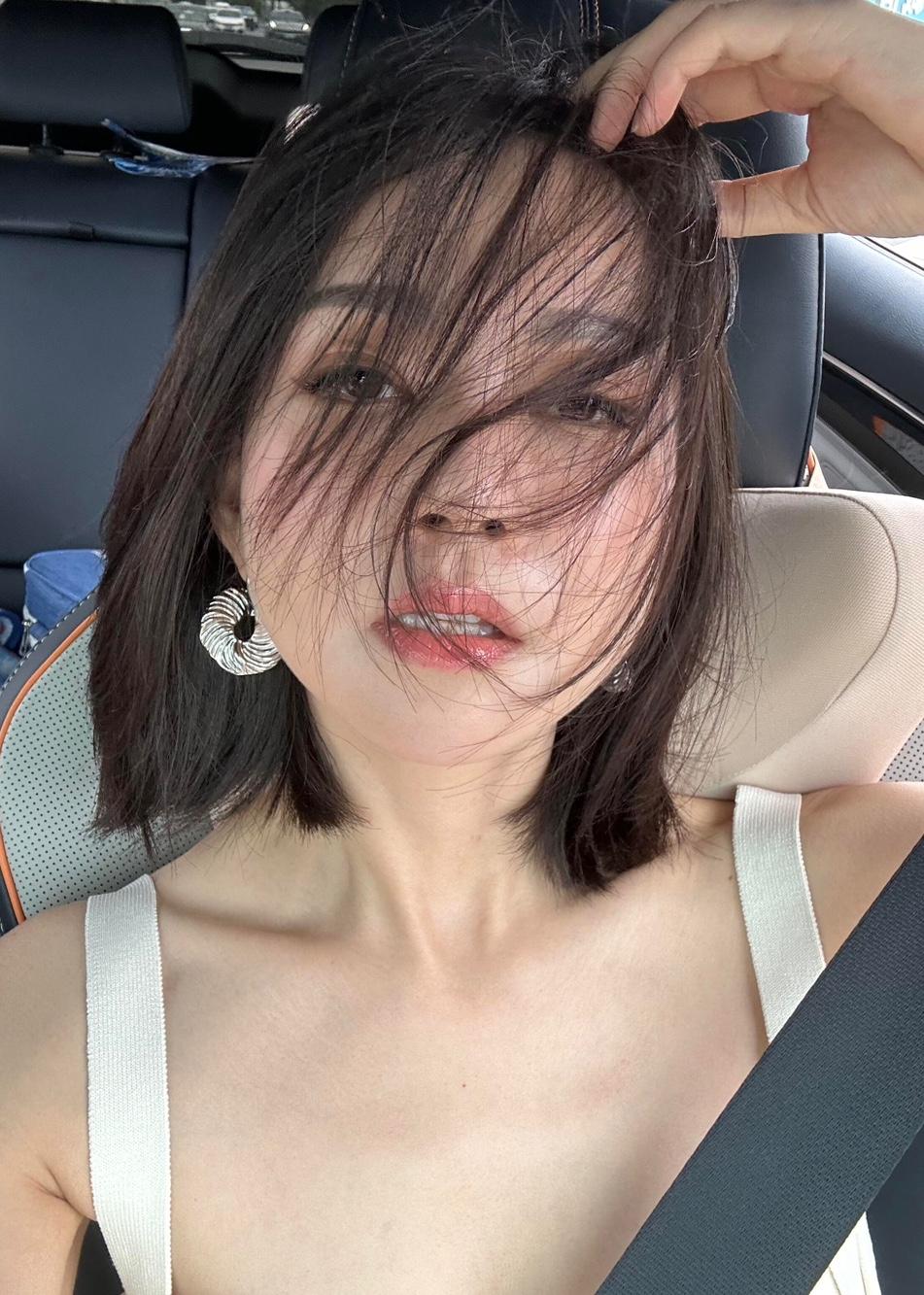 车内自拍,凌乱发丝,甜美微笑,时尚耳环,轻松自在的一天。
