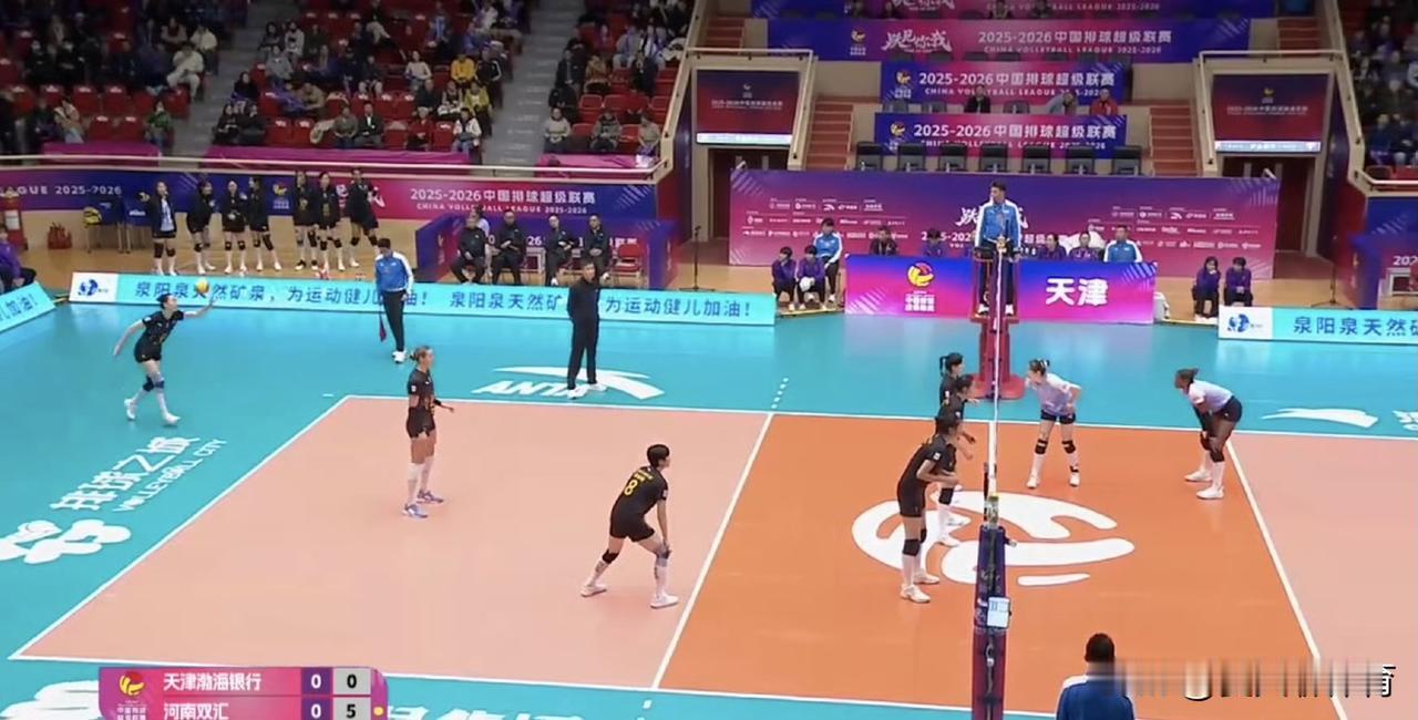 正在直播天津女排VS河南女排!全运会后双方第一次交手,朱婷和李盈莹都不在,双方都是全新的阵容首发!天津这边依然是娜塔莉娅和刘美君、副攻小马丁和刘敏乔,二传朱航霆、接应路晶、自由人孙婉鋆,河南女排蔡晓晴和姆拉杰诺维奇、副攻李若琦和黄瑞蕾、二传张梓涵、接应段梦可、自由人王思敏!第一局开局天津0-5落后,河南女排这套阵容有点出奇不意,貌似联赛还没有见过!