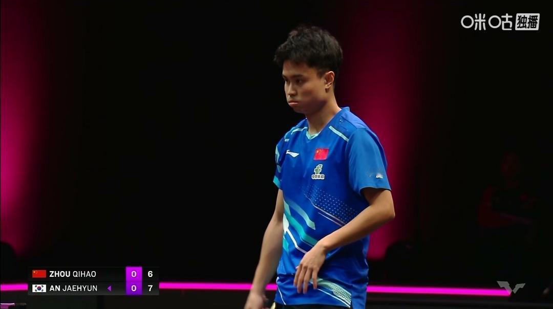 “七号”周启豪让1追3,超级大逆转胜韩国安宰贤! 周启豪让1追3,3:1(7-11;11-8;11-6;11-7)超级大逆转胜韩国安宰贤。 周启豪球迷称做7号!要充满电! 第1局7-11落后! 第2局6:8落后,“七号”就起势了,连得5分,逆转获胜,扳平比分! 第3局乘胜追击,11-6,2:1领先! 第4局11-7! 3:1锁定胜局! 周启豪单打世界排名第40! 韩国安宰贤单打世界排名第15! 这场胜利大长国乒士气,四连胜!尤其是男单下半区首胜! 热烈祝贺周启豪挺进16强!