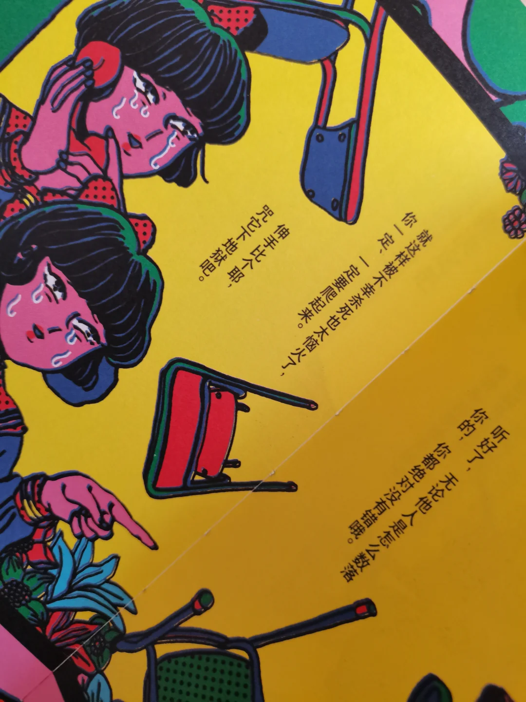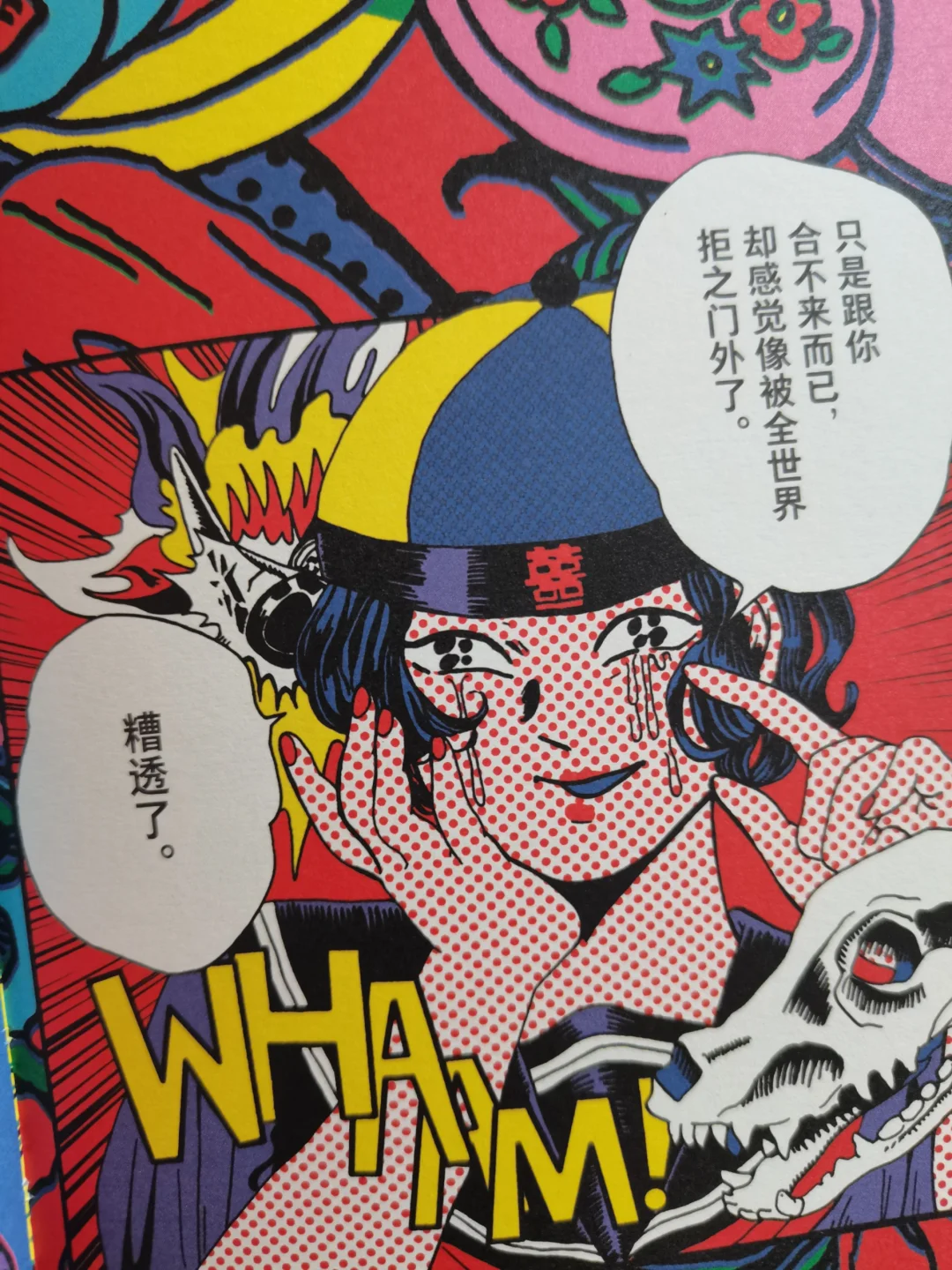 原田千秋的漫画,随便翻开一页,都能让人爽得颅内高潮!高饱和度的色彩和赛博朋克的迷幻风格,暗黑系的病娇少女设定,既怪诞猎奇又直爽解压。