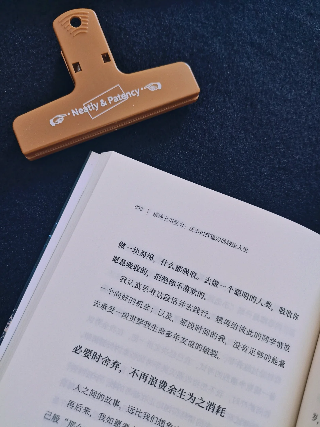 起初以为《精神上不受力》是一本说心灵鸡汤式的说教,翻开后才知道作者文长长用自己的亲身经历为例子,将自己怎么做到精神上不受力的经过分享出来。比起文绉绉的理论,从现实生活经历展开更能引起共鸣,很有真实感。