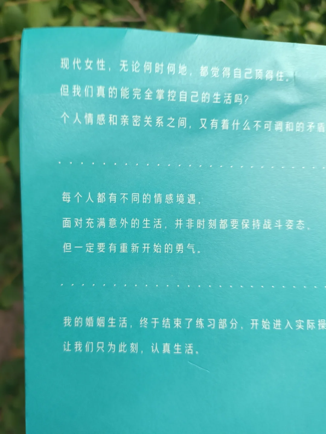 🍀但是《结婚练习生》又与普通的情感书籍不同,它的回答不是简单的一句可以或者不可以,也不是要求读者应该怎么去解决自己遇到的情感问题。