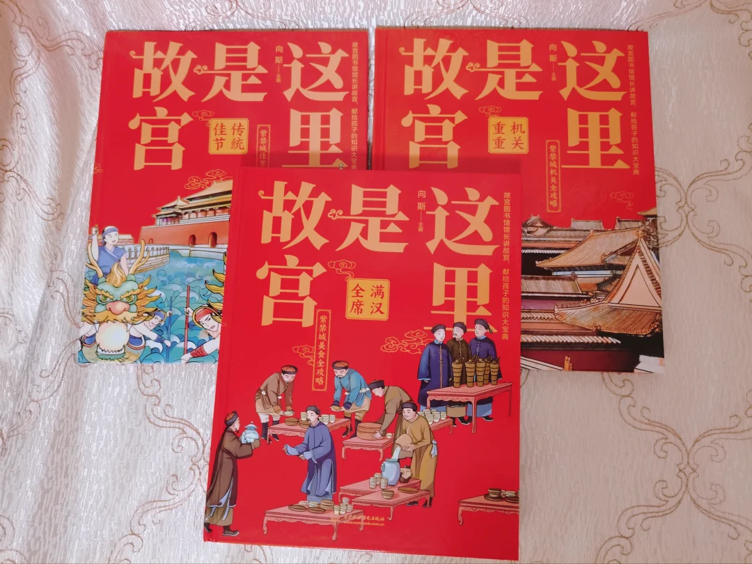全套绘本共有五册,分别是《满汉全席》、《传统佳节》、《机关重重》、《镇守神兽》和《脊翔瑞兽》。游历故宫,看神兽们各显神通,品皇家筵席,探究故宫的巧妙设计,了解中国传统文化。以生动的插画和简洁的文字,为小朋友们呈现故宫的美丽与传奇。