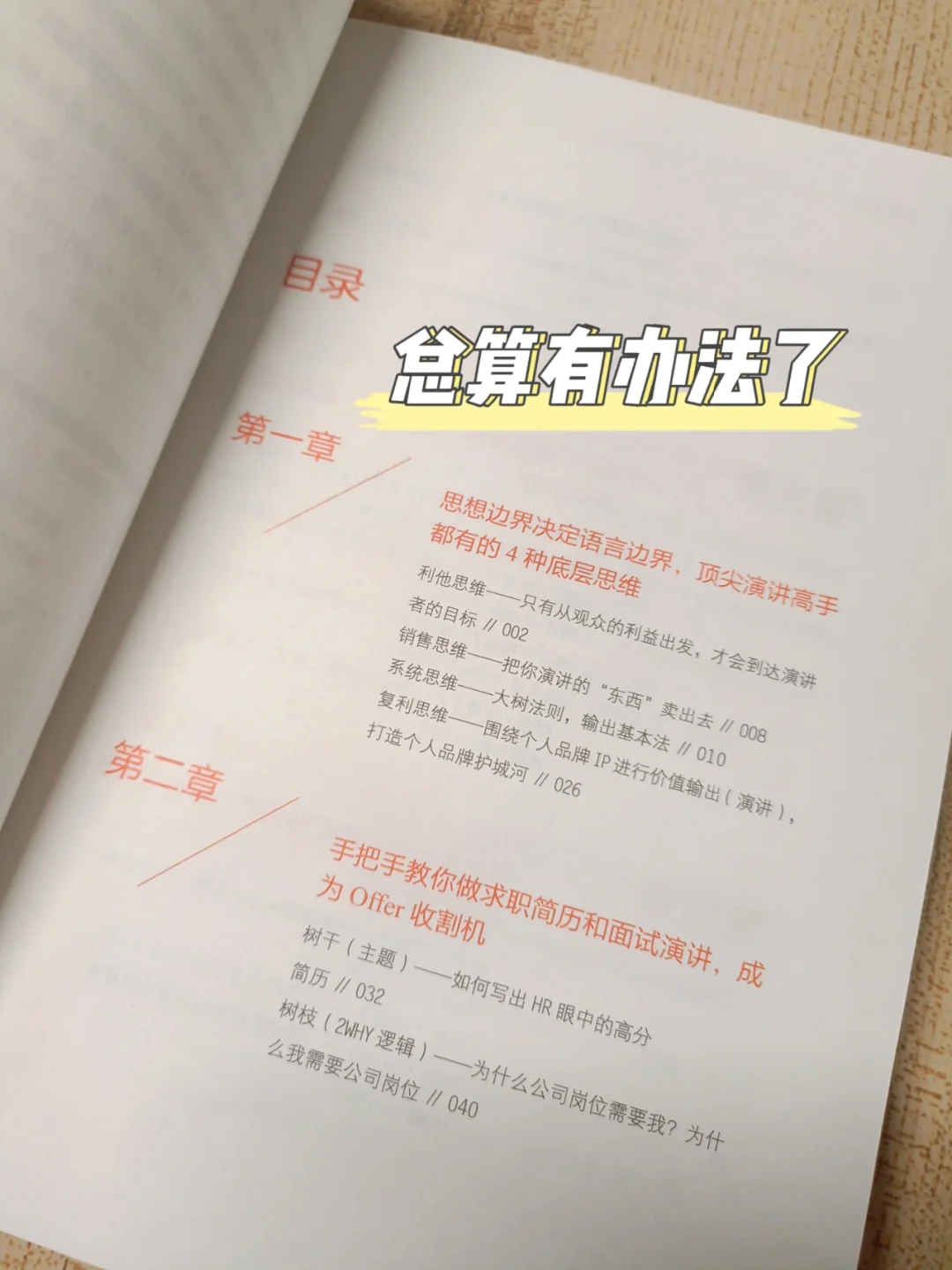 🎈树干、树枝、树叶、果子……作者将演讲按照“大树模型”去拆解,从而帮助读者更好的完善演讲的各个环节,最终实现演讲的成功。