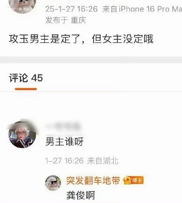 攻玉溜了好久龚俊,现在换侯明昊了吗?