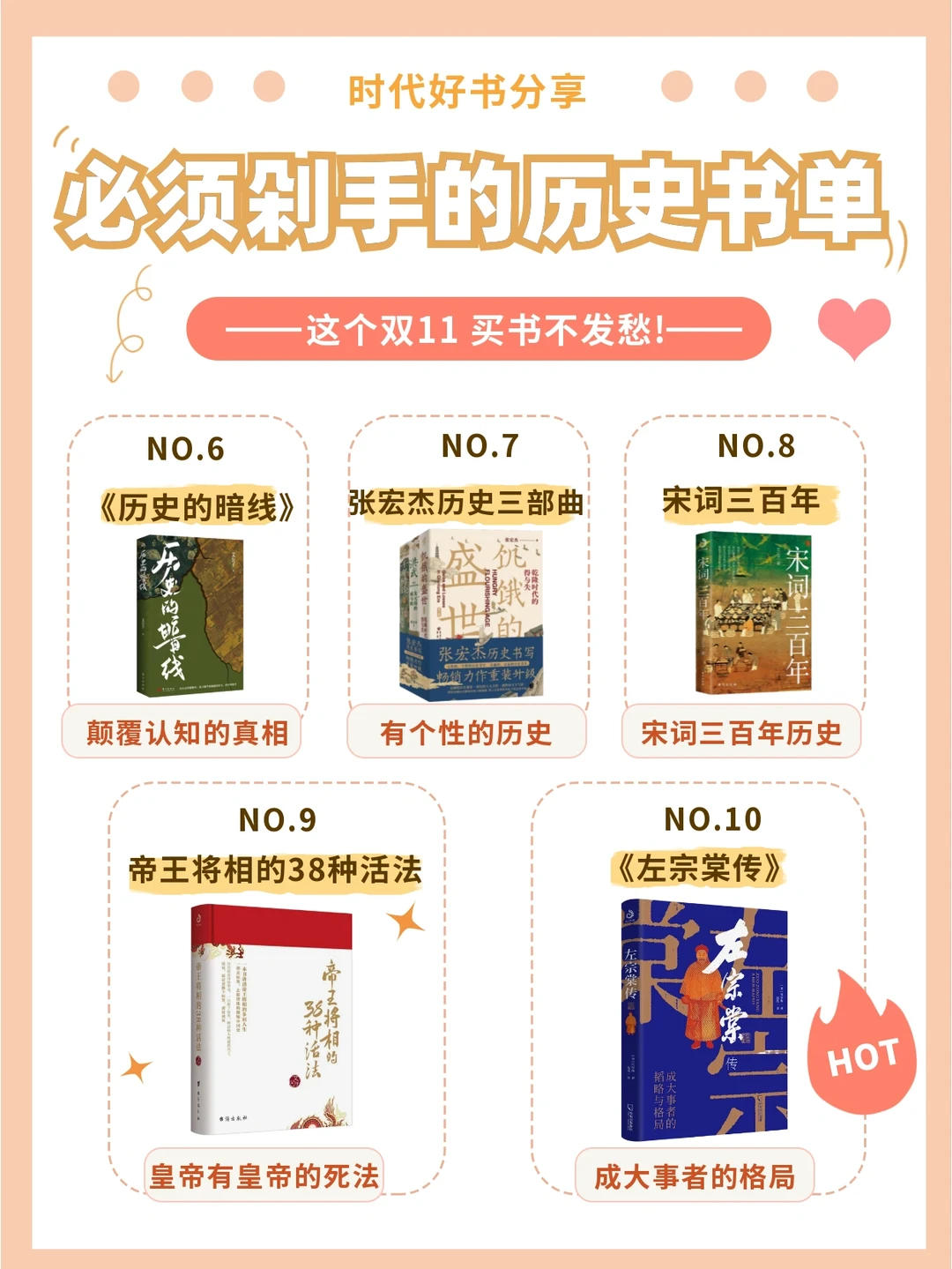 📚时代薯给大家带来的“双11必须剁手的历史书单”以历史类书籍为核心,共整理了10本时代薯亲自挑选、阅读的历史书籍,一起来康康吧~