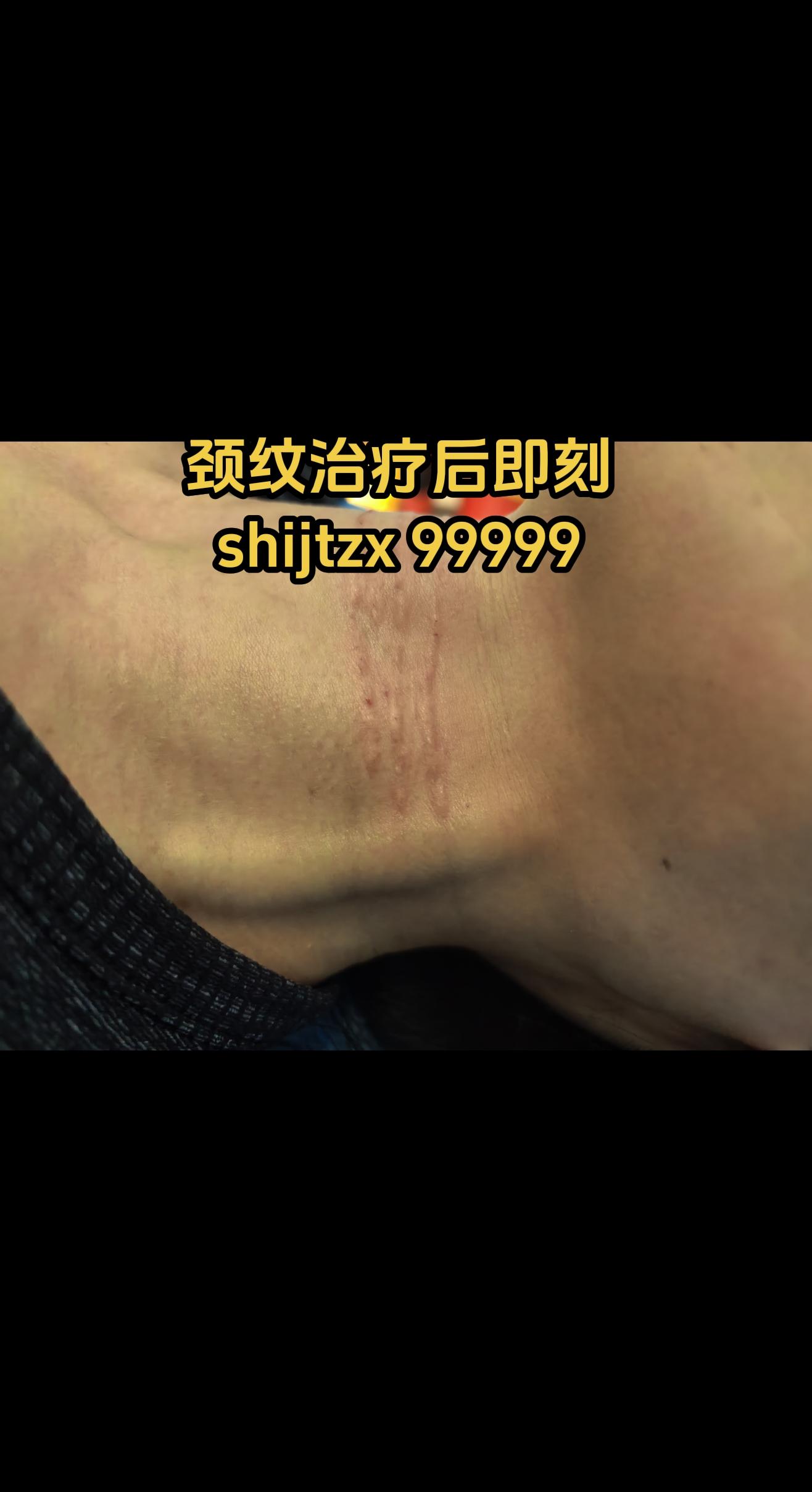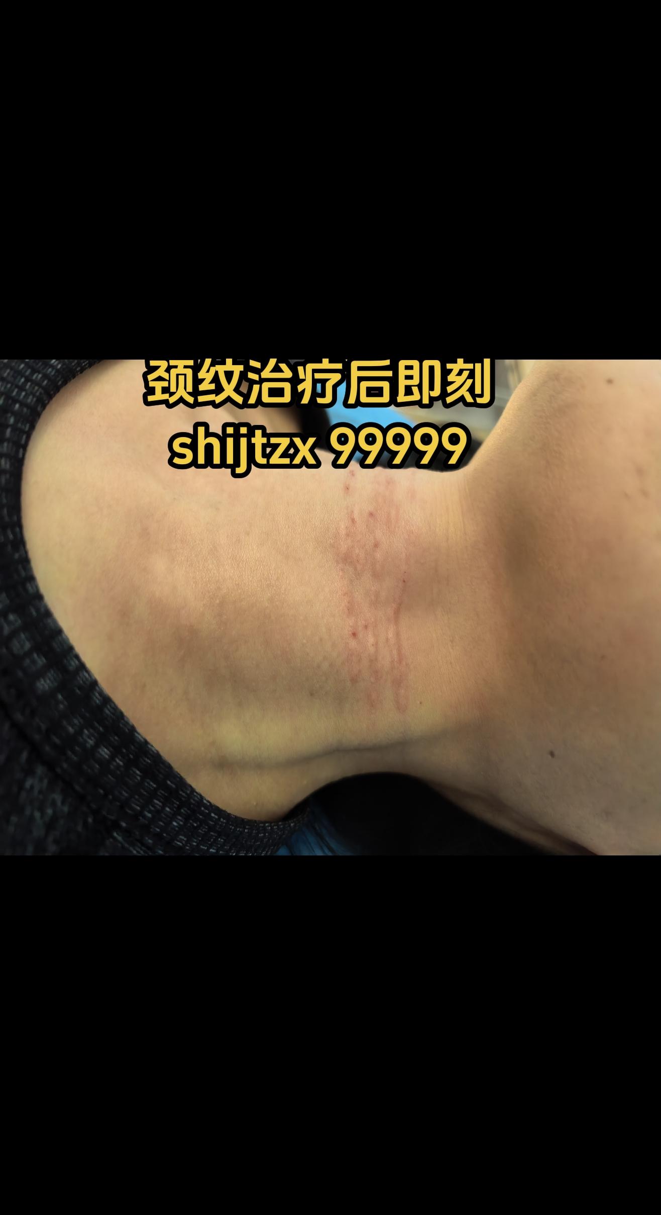 颈纹。颈纹治疗后即刻。