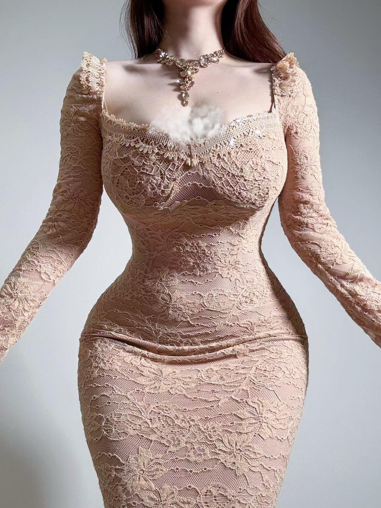 纯欲风穿搭 蕾丝连衣裙 微胖穿搭 性感修身连衣裙 微胖女生