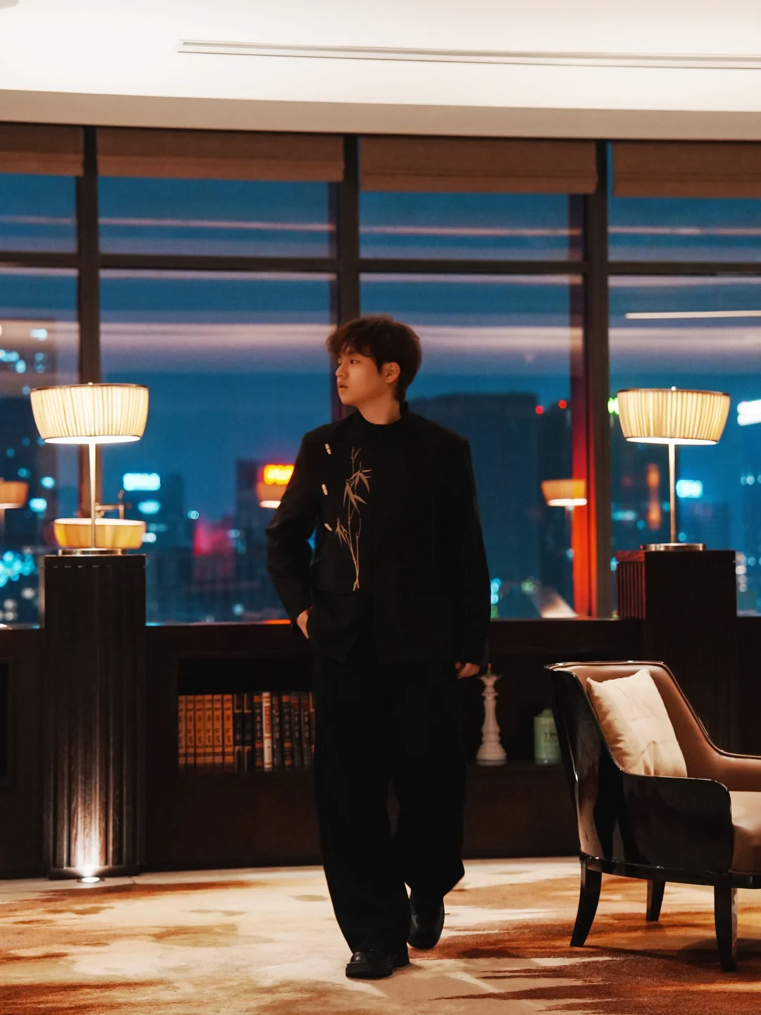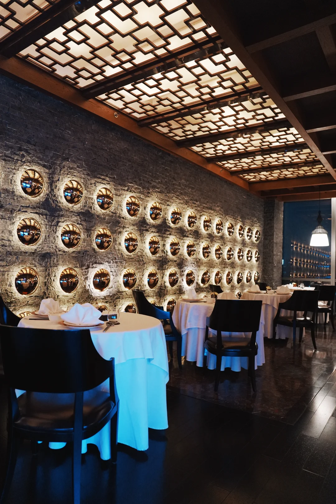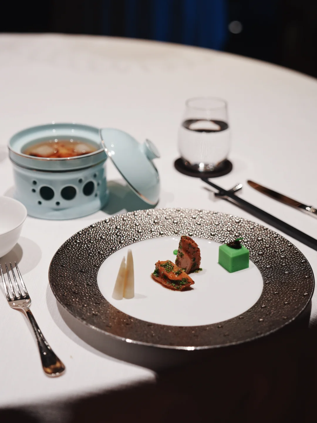 26楼的高度刚刚好,窗边坐下时,正好赶上日落。天府广场的灯光一点点亮起来,车流在脚下汇成光河。服务员轻声推荐了蓝调时刻——就是天黑前那20分钟,天空是深蓝色,城市灯火初上,确实美得像电影画面。