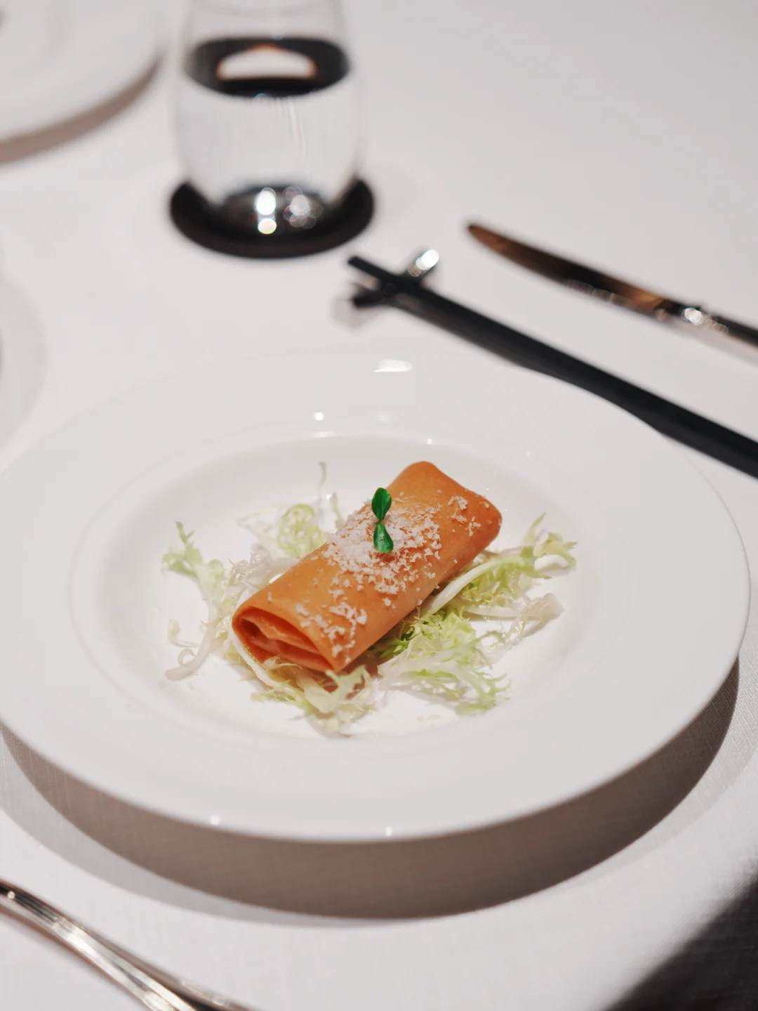 点了春季新品双人餐,前菜拼盘三道,最喜欢香椿芽拌鲍鱼,椿芽切得细碎,香气足,鲍鱼弹牙,是春天该有的味道。泡椒浸春笋也爽口,酸辣刚好。