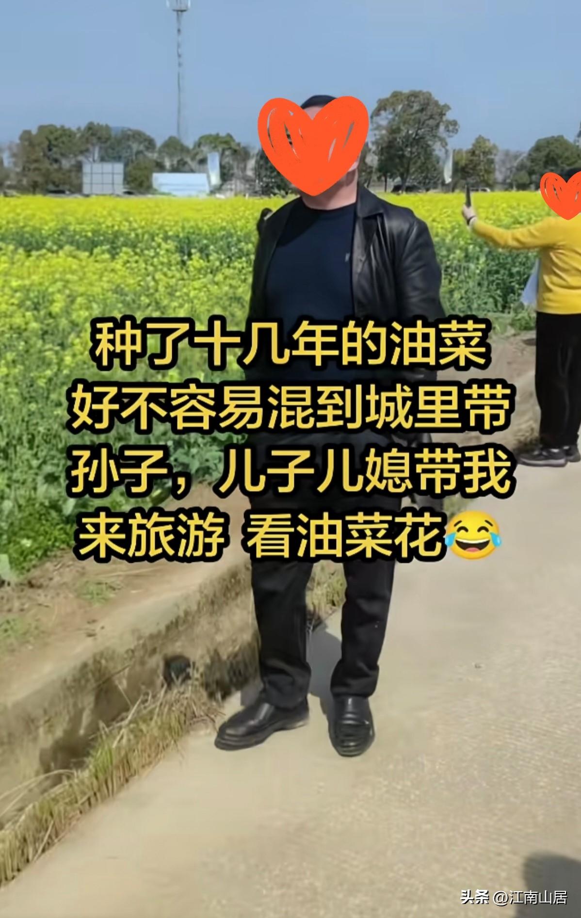 这是一个非常励志的故事!一男子种植了十多年的油菜,好不容易退休了,到城里帮儿子,带孙子。然而,周末的时候,儿子儿媳妇,带他去旅游。来到农村农田旁边,让他看油菜花,散散心。 这是不是一个非常励志的故事?转来转去,又来看相处了十多年的油菜花。只不过,这次是从种植油菜花的角色,转变为欣赏油菜花。我想此时此刻,该男子的心情,肯定是温暖的,感慨万千的。