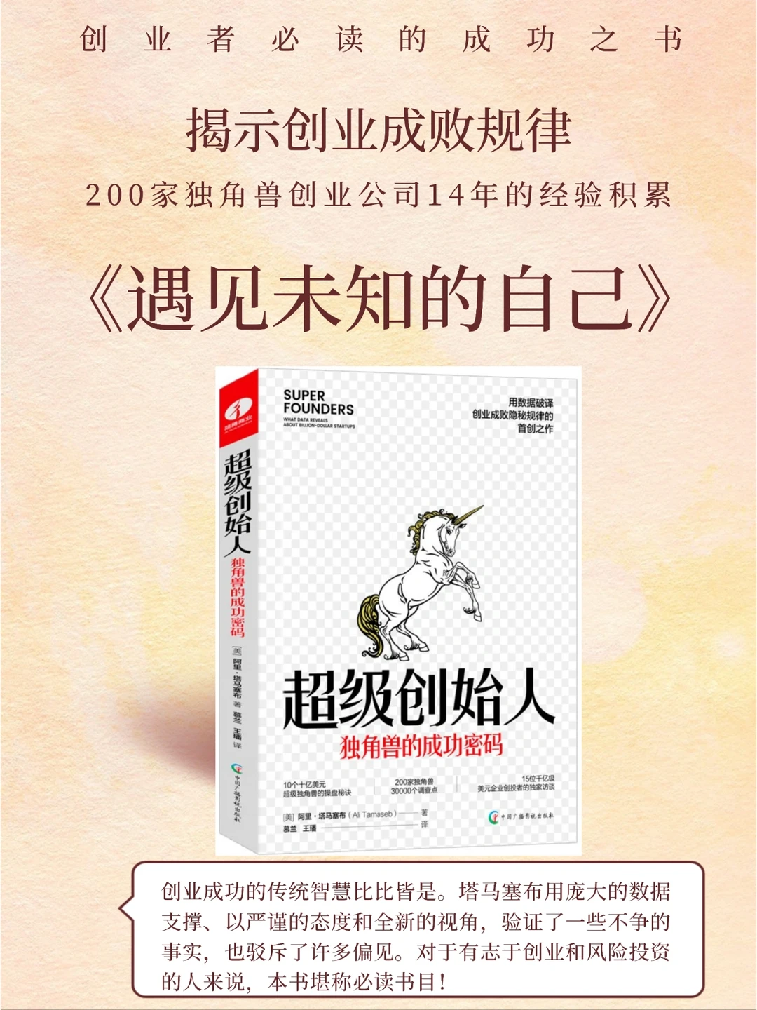 《超级创始人-独角兽成功的密码》这本书给了我们一个读懂创业成功的“技能”。🎈🎈作者阿里·塔马塞布在经过。对15位千亿级创投者和数百家独角兽企业的调查采访以后写下了这本。