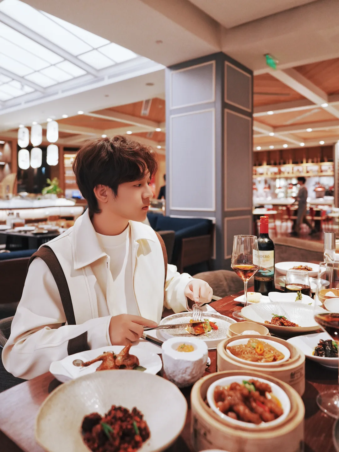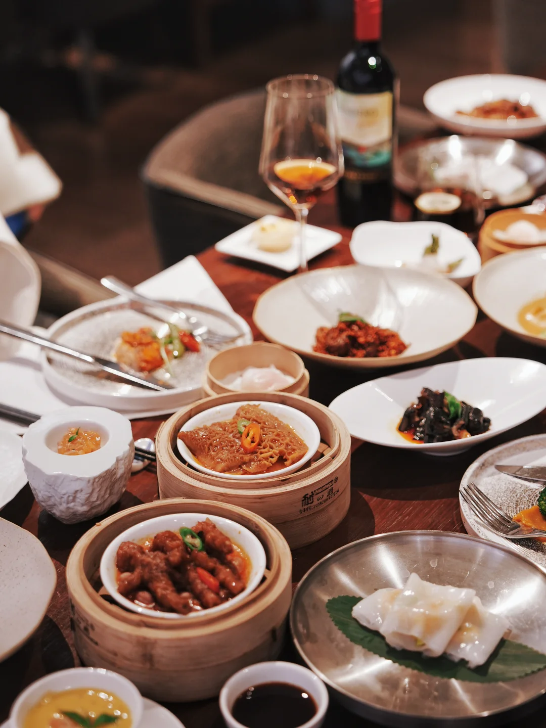 晚餐在一楼自助餐厅吃的粤菜自助,虾饺、烧卖、肠粉都有,味道挺正。师傅现蒸的点心热乎上桌,不用自己跑来跑去拿。服务员看我们吃得差不多了,主动问要不要再添份甜品。