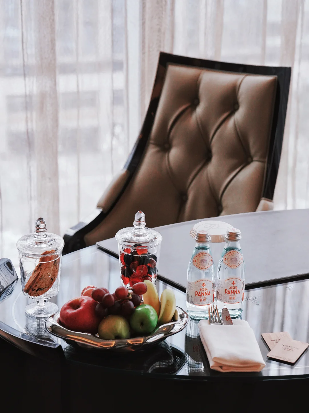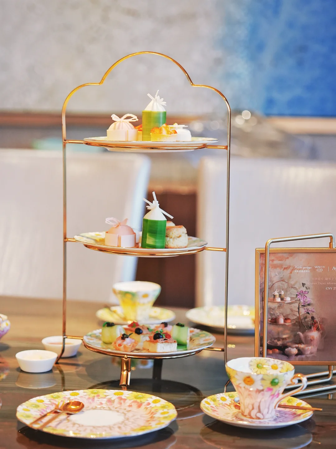 茶点走的是英式经典路线,三层架摆得精致,司康趁热抹上奶油和果酱,外酥内软。咸点里的三文鱼卷和黑松露塔很对味,甜点的伯爵茶慕斯甜度刚刚好,配一杯大吉岭红茶,坐着看了两小时城南天际线。