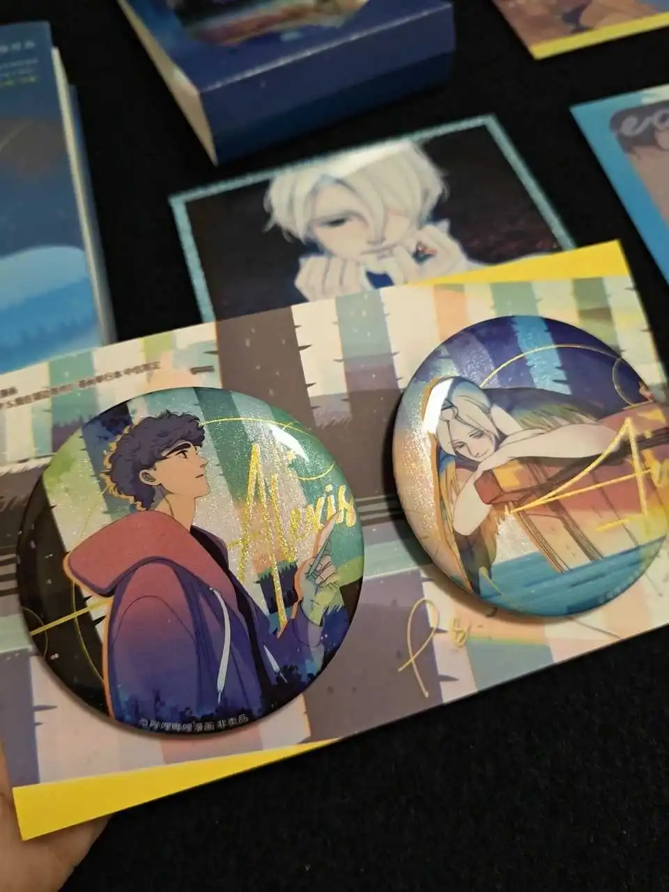 💘拉丝银葱双闪吧唧一对,75mm大尺寸!双闪效果很闪,在背卡的加持下,很像他们隔着波光粼粼的湖边相遇😍