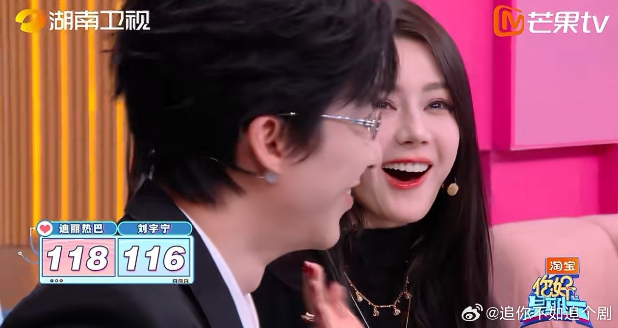 迪丽热巴眼里只有赢你好星期六 在心动挑战里,刘宇宁还在深情“表白”,试图打动迪丽
