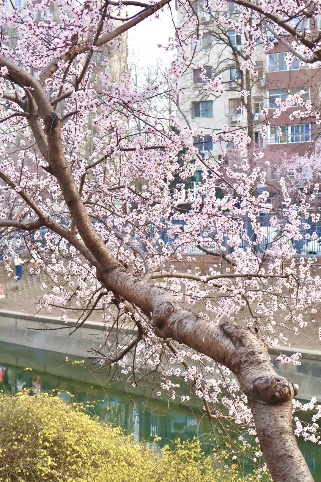 ❹建筑+花同框:以大厦为背景,拍现代感与春日花景融合大片