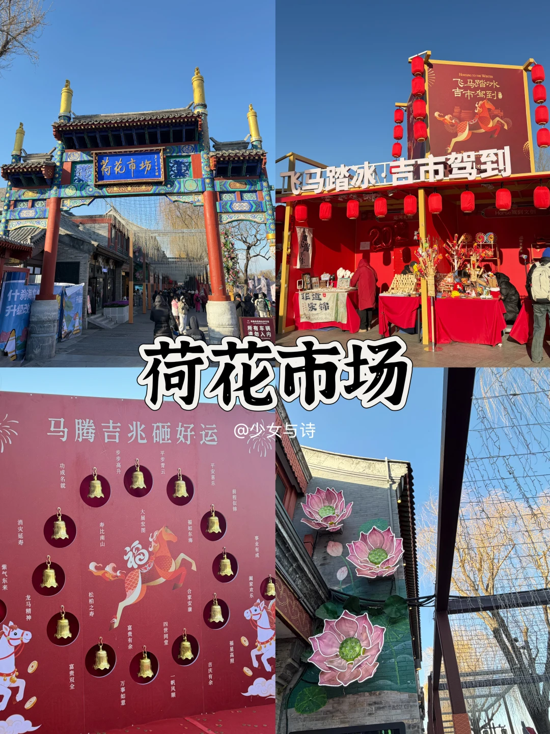 3️⃣荷花市场🛍️:临水老牌市集,新春摆满京味年货、非遗手作,逛累可赏什刹海风光