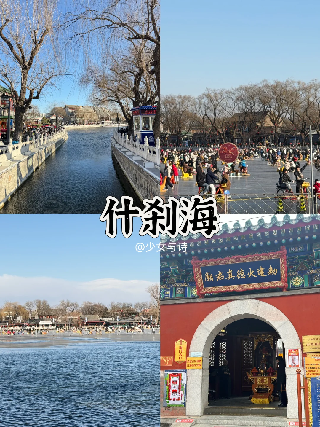 4️⃣什刹海❄️:冬日可玩冰嬉,岸边红灯笼林立,茶馆小吃扎堆,落日超美