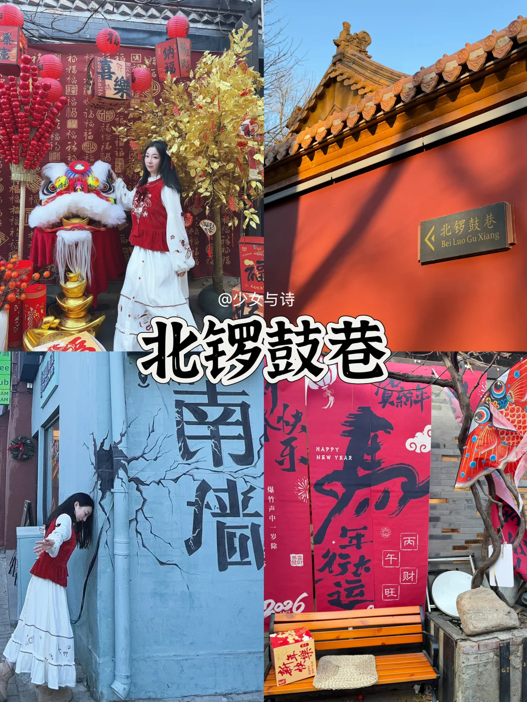 8️⃣北锣鼓巷🌿:比南锣清净小众,新春有剪纸年画摊,打卡“撞南墙”机位超有创意