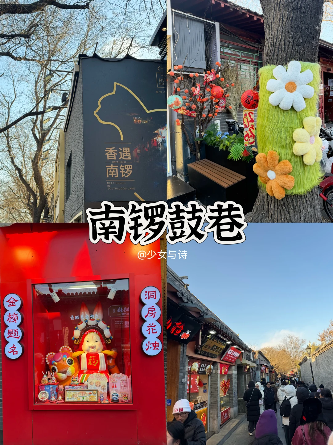 6️⃣南锣鼓巷🚶:老胡同年味活化石,红灯笼挂满巷,文创小吃扎堆,烟火气十足