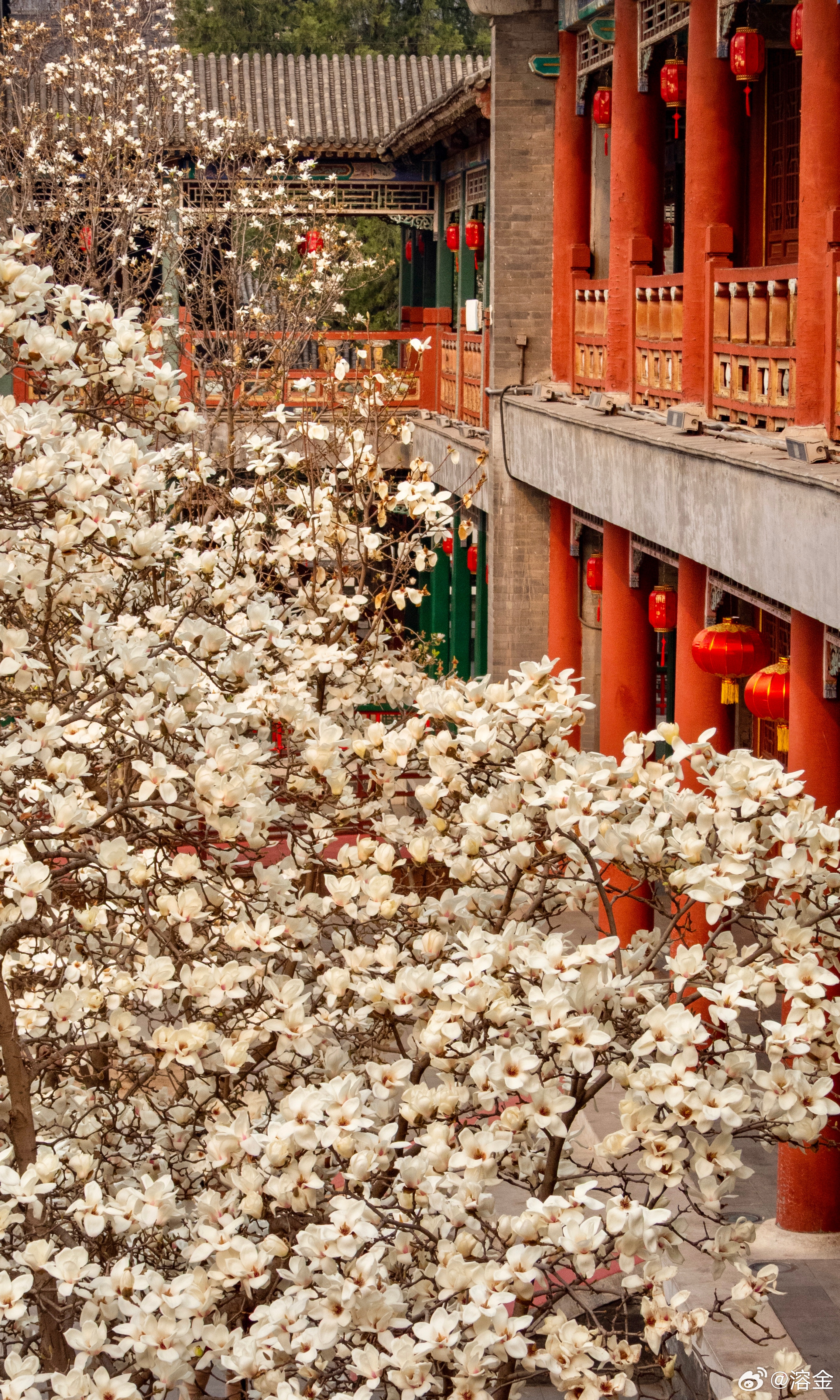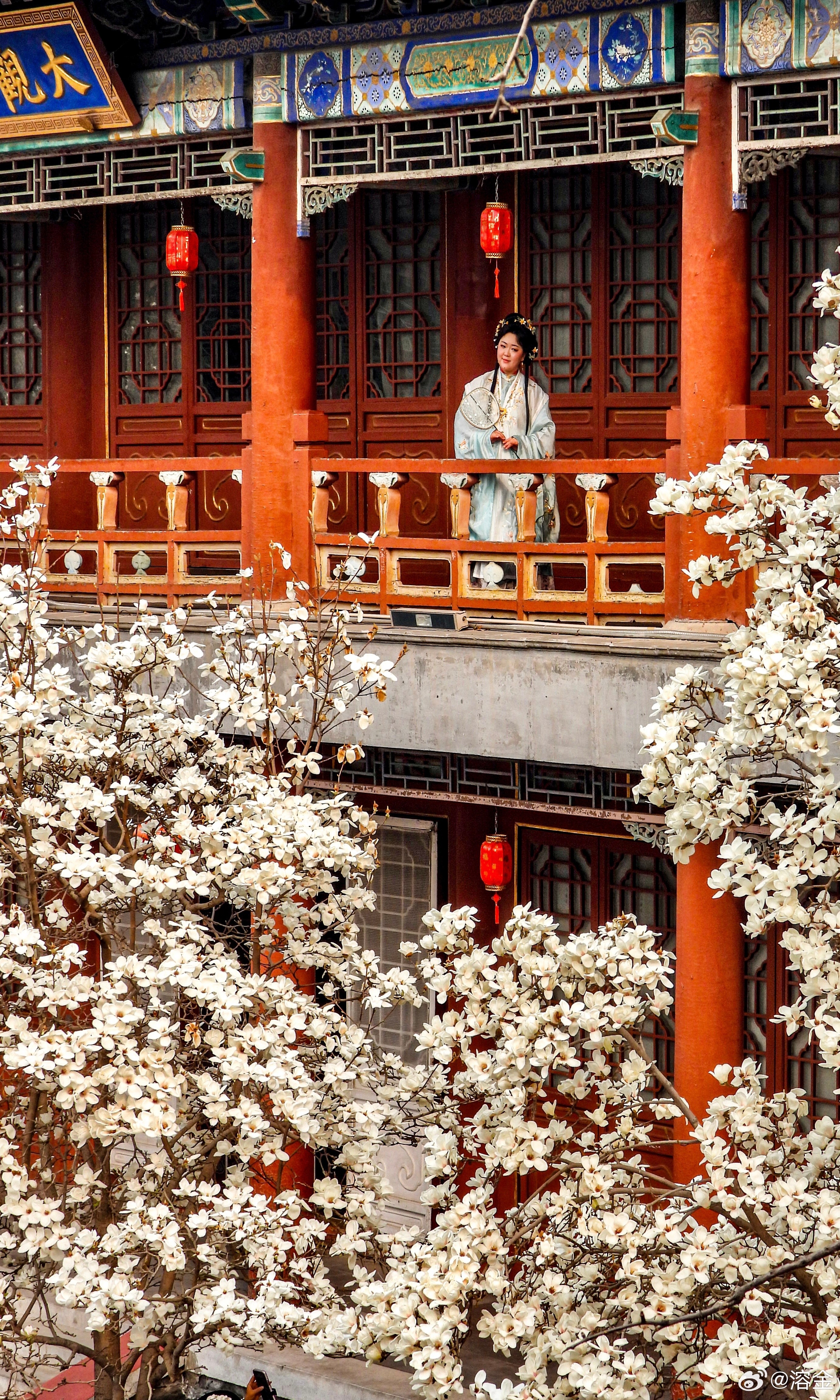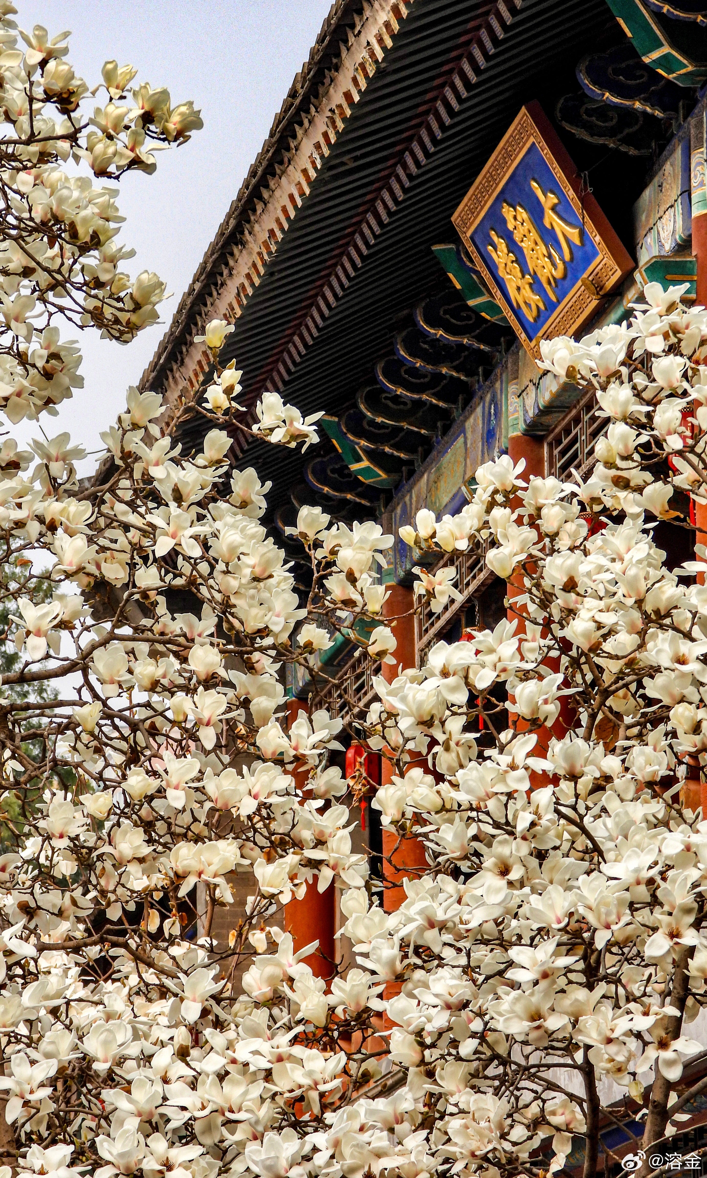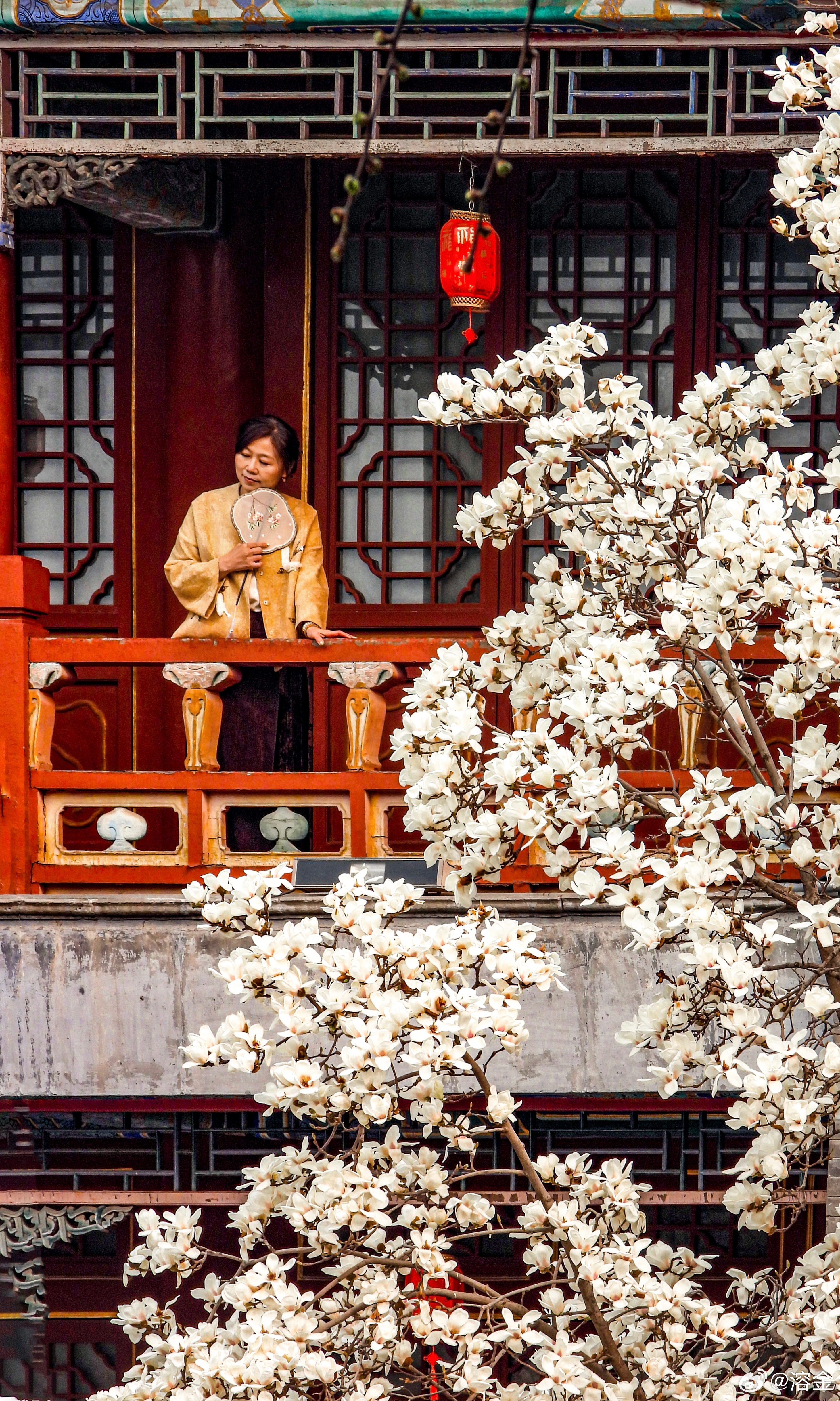 【大观楼前玉兰花 】朱阁涵晴日,雕栏映玉英。玉兰堆雪色,红袖倚云屏。灯影摇红暖,衣香带露清。东风如解意,长驻此中情。摄影