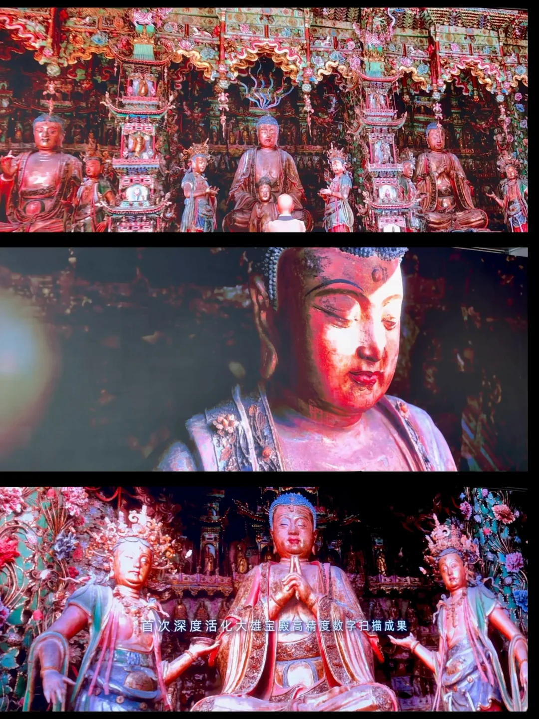 诞生近400年以来,仍是世界悬塑艺术最高成就!毫米级高精度建模,戴上VR设备,触发点位就能缓缓升空上楼,360°观1900多尊悬塑,大到佛像纹路、小到指尖细节都清晰可见。手势交互可解锁莲花绽放、佛像活化,比实地看震撼百倍。