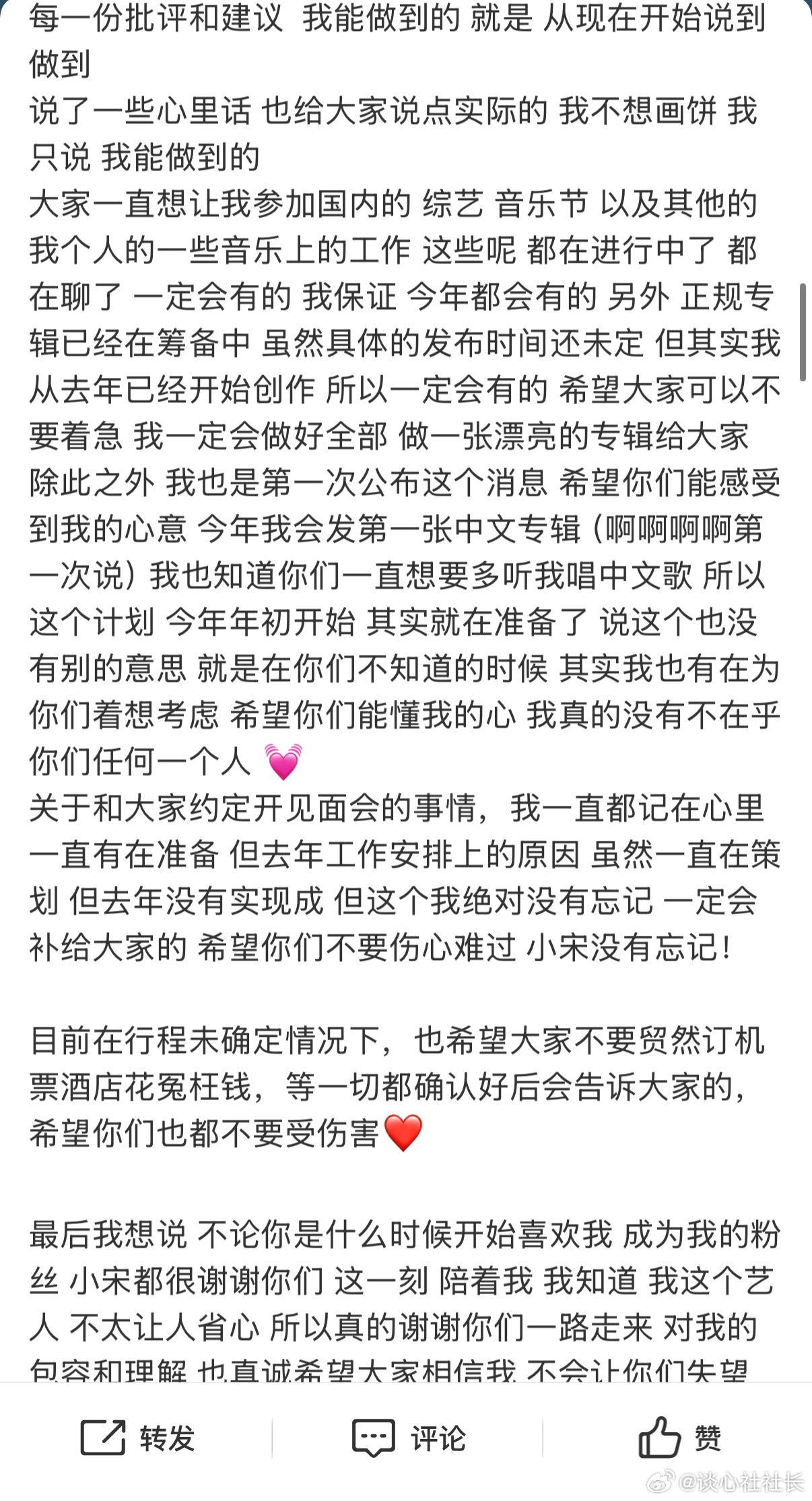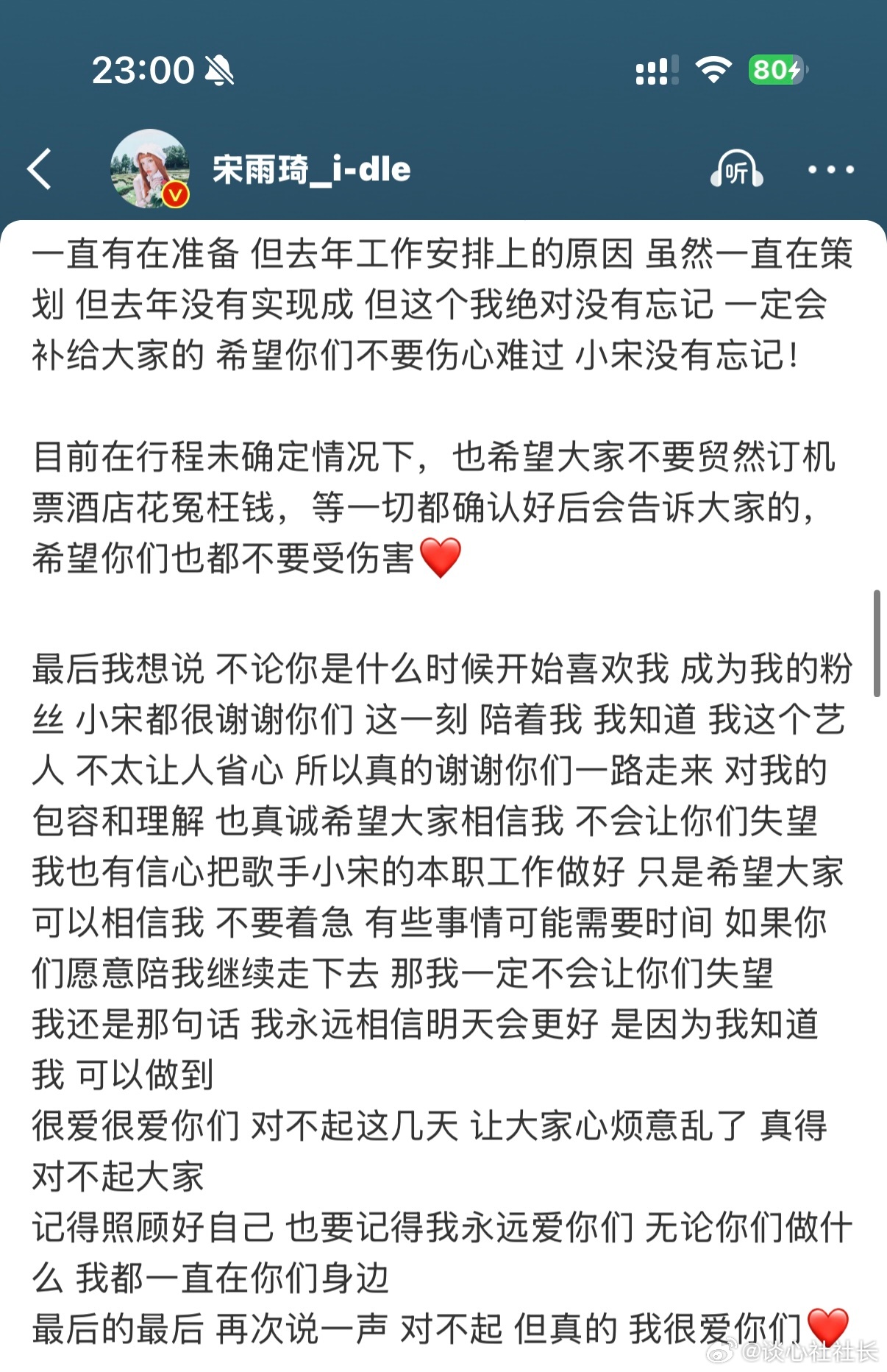 【宋雨琦发长文跟粉丝报备工作 】我的天这个宋雨琦好真诚!发长文跟粉丝报备身体状况和工作还约定了今年会开见面会和专辑喜欢宋雨琦好幸福吧~宋雨琦