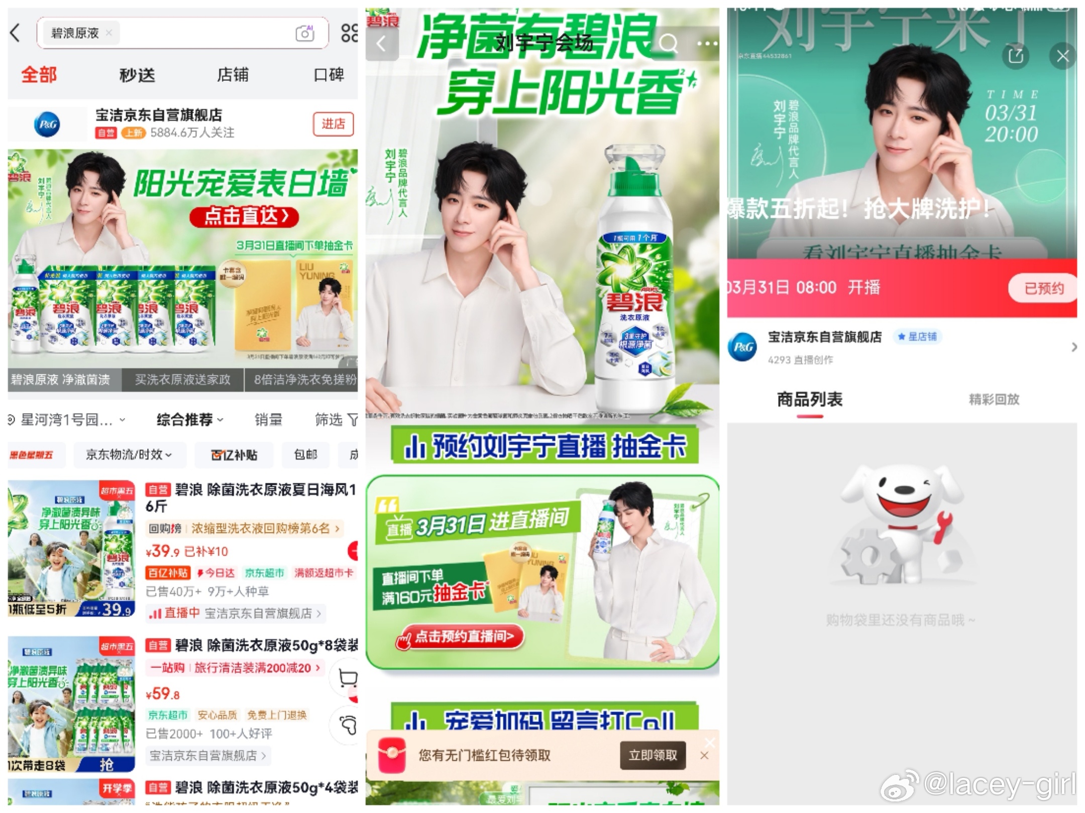 爱宁刘宇宁 就是要全套!碧浪三件礼已加入心愿单,今天10点🐶准时开冲!把阳光和宁的爱意都带回家~净菌有碧浪穿上阳光香