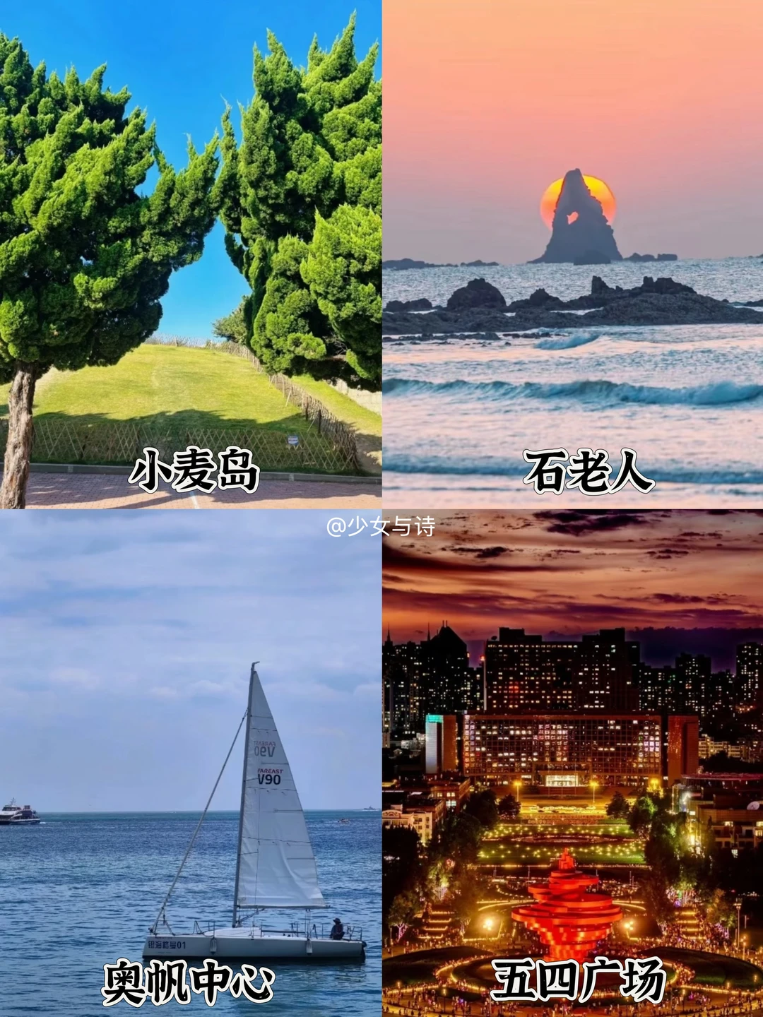 ✔️小青岛公园:白色灯塔与碧海蓝天相映,日落绝美