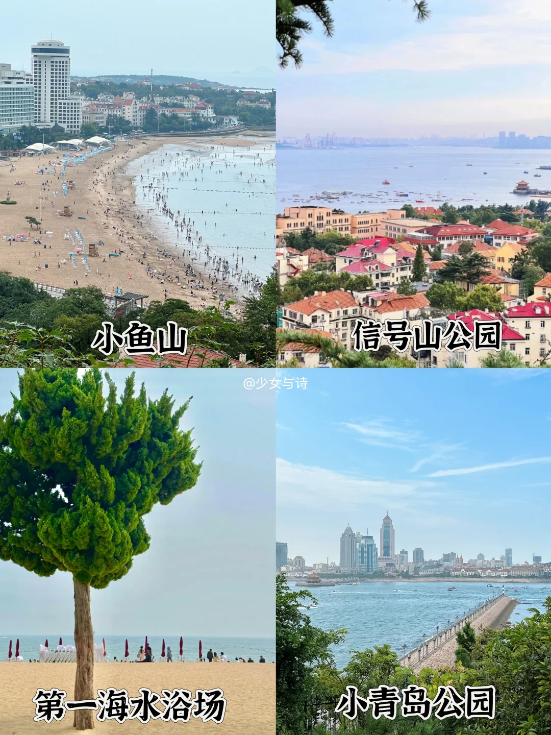 ✔️小鱼山:青岛最佳观景台之一,览潮阁远眺第一海水浴场与小青岛