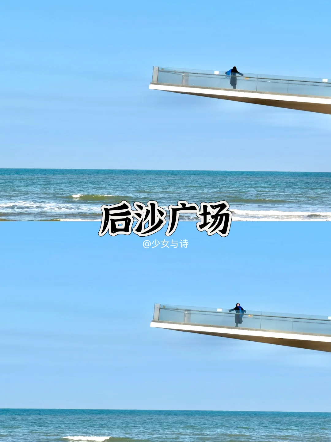 6️⃣后沙广场🏖️:万米金沙滩的终点惊喜!旺角廊桥探身入海,踏浪时能感受风的形状,沙滩细腻少人扰,时常还有海鸥掠过。