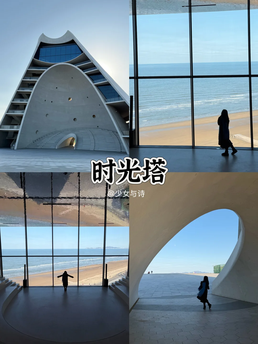 1️⃣时光塔⏳:城市绿洲里的文艺地标!推窗见海的落地窗书店📖超吸睛,超大玻璃幕墙框住渤海,阳光洒在书页与海景间,19:00亮灯后登顶,可俯瞰城市星河与海岸交辉。