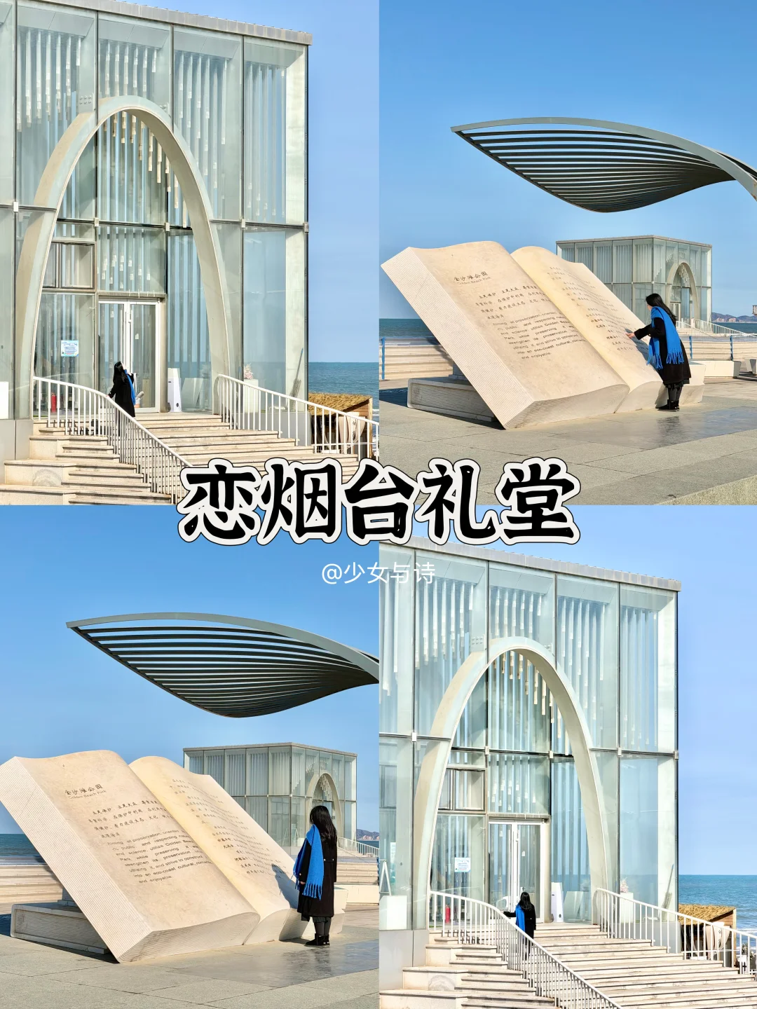 5️⃣恋烟台礼堂💒:海岸线上的纯白浪漫!玻璃建筑反射天空与海景,傍晚灯光亮起时温柔翻倍,以礼堂+大海为背景拍全景,小众机位搭配书本建筑更显意境。