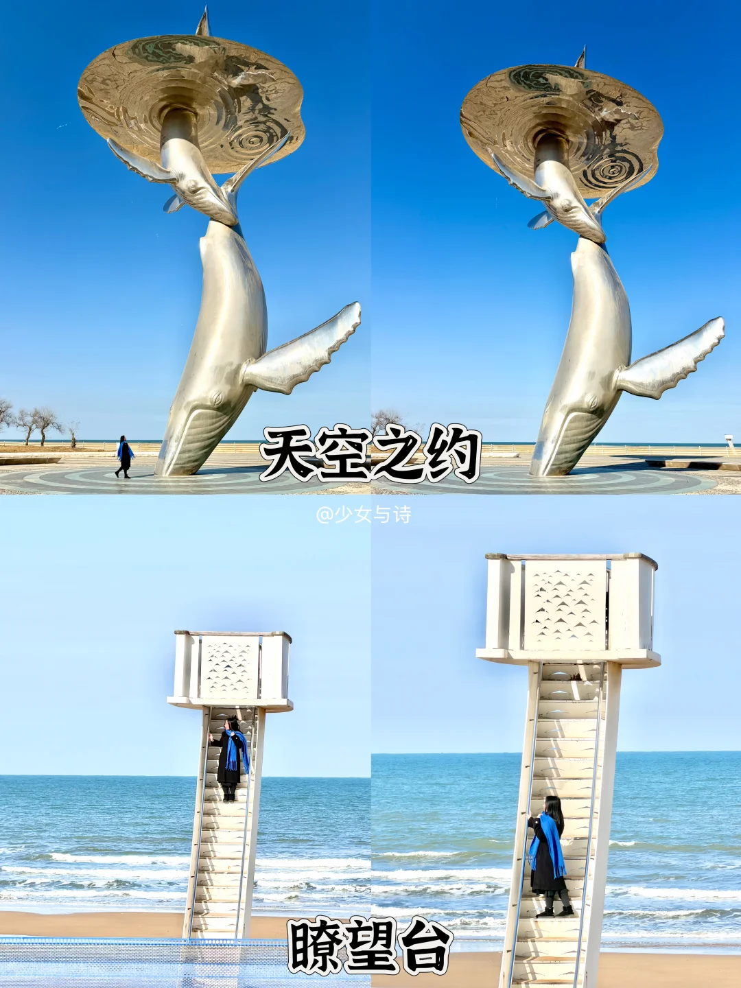 3️⃣天空之约☁️:悬空观海步道!白色廊桥延伸向海,玻璃护栏倒映碧海蓝天,广场散落海洋主题雕塑,随手拍都是清新大片。