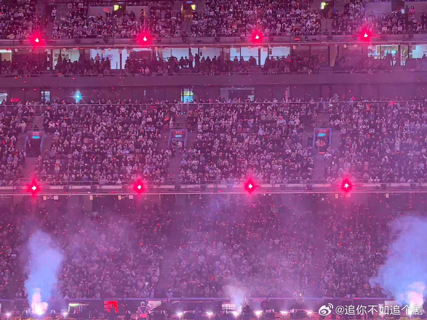 张杰鸟巢上座率 满场热情如火,荧光棒照亮夜空,张杰的演唱会总是这么震撼人心,内娱
