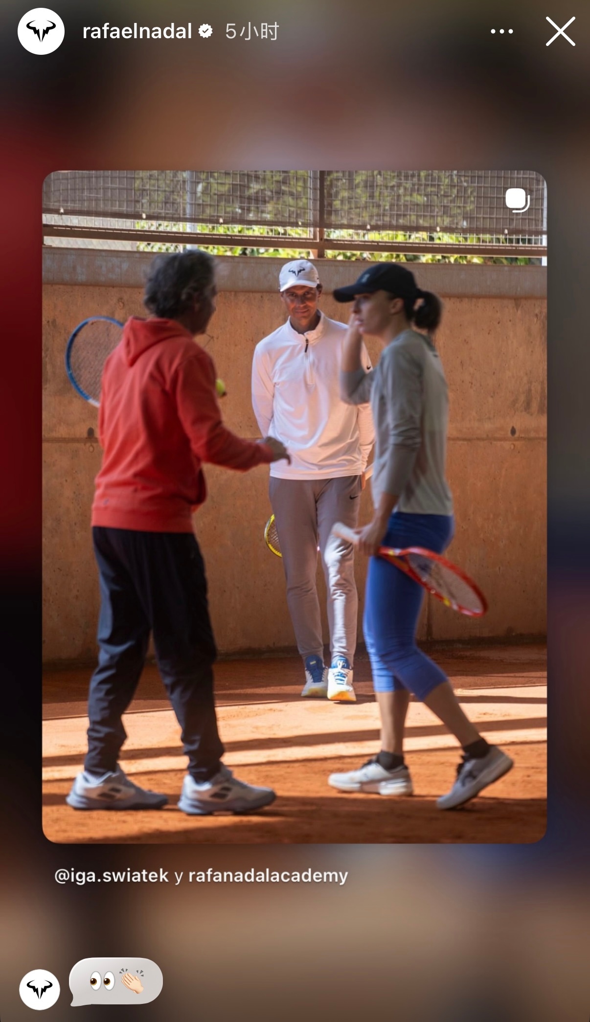 斯维亚泰克在社交媒体晒图发文:训练,学习,拥抱在马洛卡的每一天。谢谢纳达尔让我感觉像回家一样😊🎾