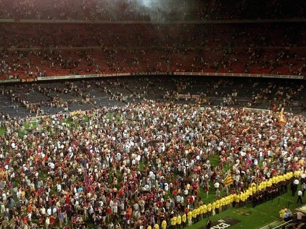 Camp Nou after That Rivaldo hat-trick against Valencia ,2001 . 足球巴萨