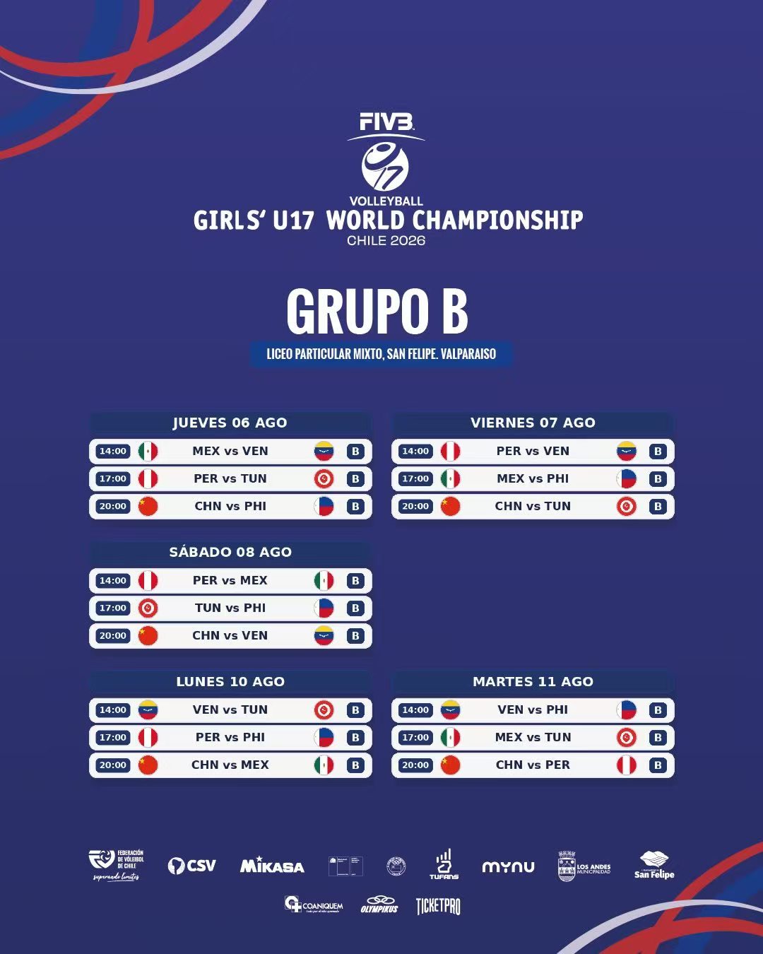 2026年U17女排世锦赛赛程出炉,中国🇨🇳U17女排分在B组,主教练是吴胜!