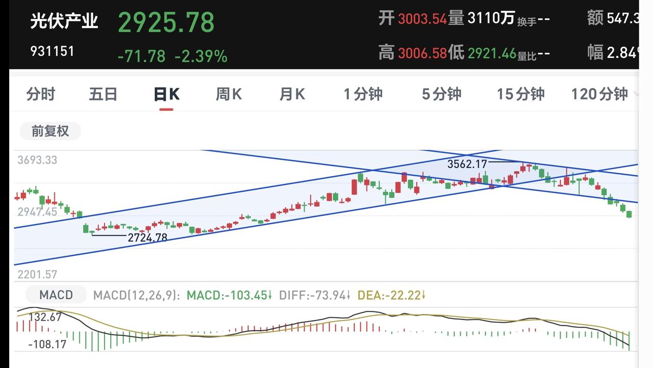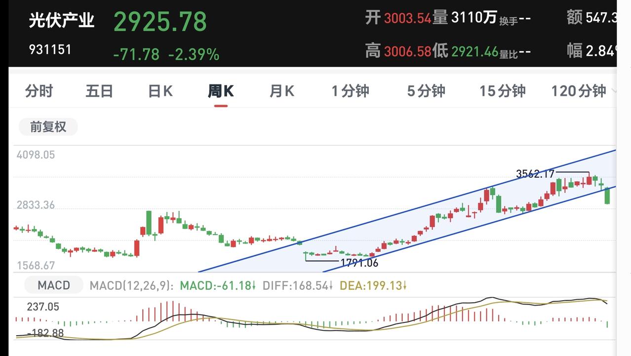 基金:光伏板块应该怎么办 光伏板块上周五下跌了2.68%,是连续第2个交易日下跌,持有人数在所有板块当中排名第12位,散户人数也是不少。 光伏板块近一个月以来下跌了10.94%,近三个月以来下跌了0.89%,近六个月以来下跌了2.20%,近一年以来上涨了28.02%,近三年以来下跌了23.31%,这个板块有26只基金,各只基金的情况见下面的截图7。 光伏板块日线级别处于短期下跌趋势中,上周下跌跌破了这个下跌通道的下轨线,进入了日线级别加速下跌走势,在上涨突破这个下跌通道上轨线之前,都不要轻易判断这个板块下跌趋势已经反转,短线持有的人需要继续注意风险。 光伏板块上周下跌跌破了周线级别上涨通道的下轨线,而且是以中大阴线跌破这条下轨线,有效破位的可能性很大,长线持有的人需要注意风险。 我没有持有光伏板块的基金,持有的是新能源汽车板块的基金,持有金额不大,只有15140元,持有收益5644元,持有收益率59.51%,累计收益41092元,每天定投10块钱。 新能源汽车板块也是曾经的热门板块,几年之前,我在高位的时候进行了清仓式的止盈,然后是一路定投到现在,现在的累计收益是远远大于持有金额,保住这个累计收益最重要的是,没有相对确定性的机会,都不要轻易进场。 比如说,有人买了10000块钱基金,上涨了100%,挣了10000块钱,止赢了10000块钱,只剩下10000块钱利润在里面飞,止盈以后,这只基金进行了调整,下跌了50%,这个时候10000块钱利润只剩下了5000块钱,看到下跌幅度达到50%以后,他又进场了45000块钱,这个时候的持有金额变成了50000块钱,这样的情况之下,只要在下跌超过10%,他这只基金的累计收益就会为负,也就是很快就把原来挣的钱吐回去了。 玩基金的过程当中,保住本金是最重要的,保住已有的收益也是很重要的,这也是我前段时间进行再一次止盈的原因,有没有人现在已经把去年挣的钱全部吐回去了?现在估计还不多,如果再轮一轮下跌,估计把去年利润全部回吐的人就有很多了。 我写文章请大家过来欣赏,许多人看了以后,什么痕迹都没有留下,走的时候也是一声不吭,连一个点赞,连一句评论都不会留下,走的是那样的无声无息,这样的人是不地道的,没有做人最起码的准则,我不愿意与这样的人交朋友。