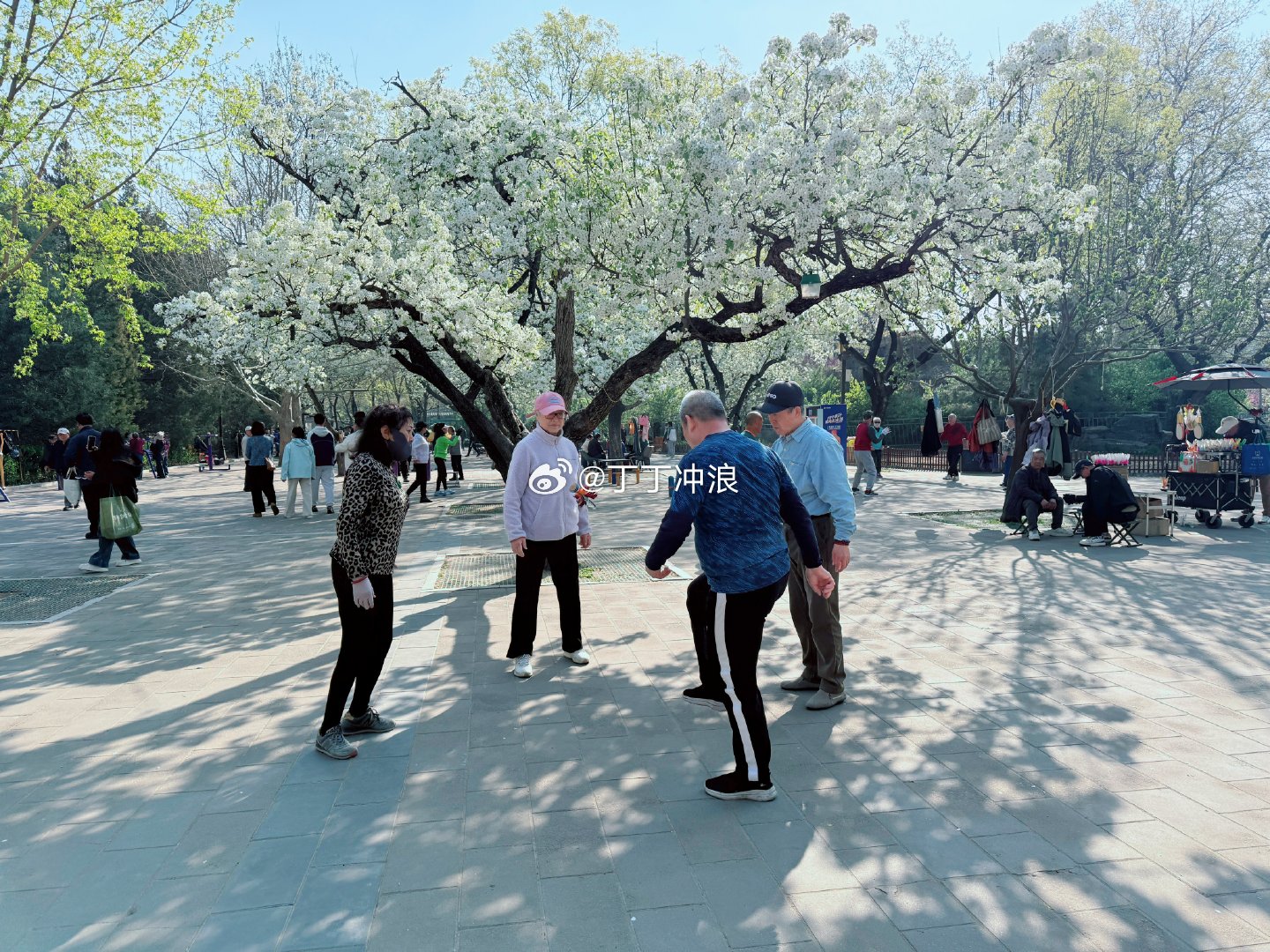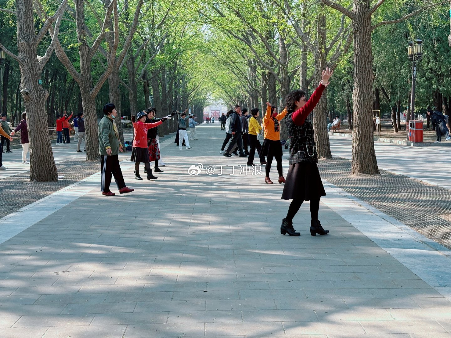 走进地坛公园,有小学生在这里举办活动,有大妈跳舞,有大爷踢毽子,也有女生和明星认