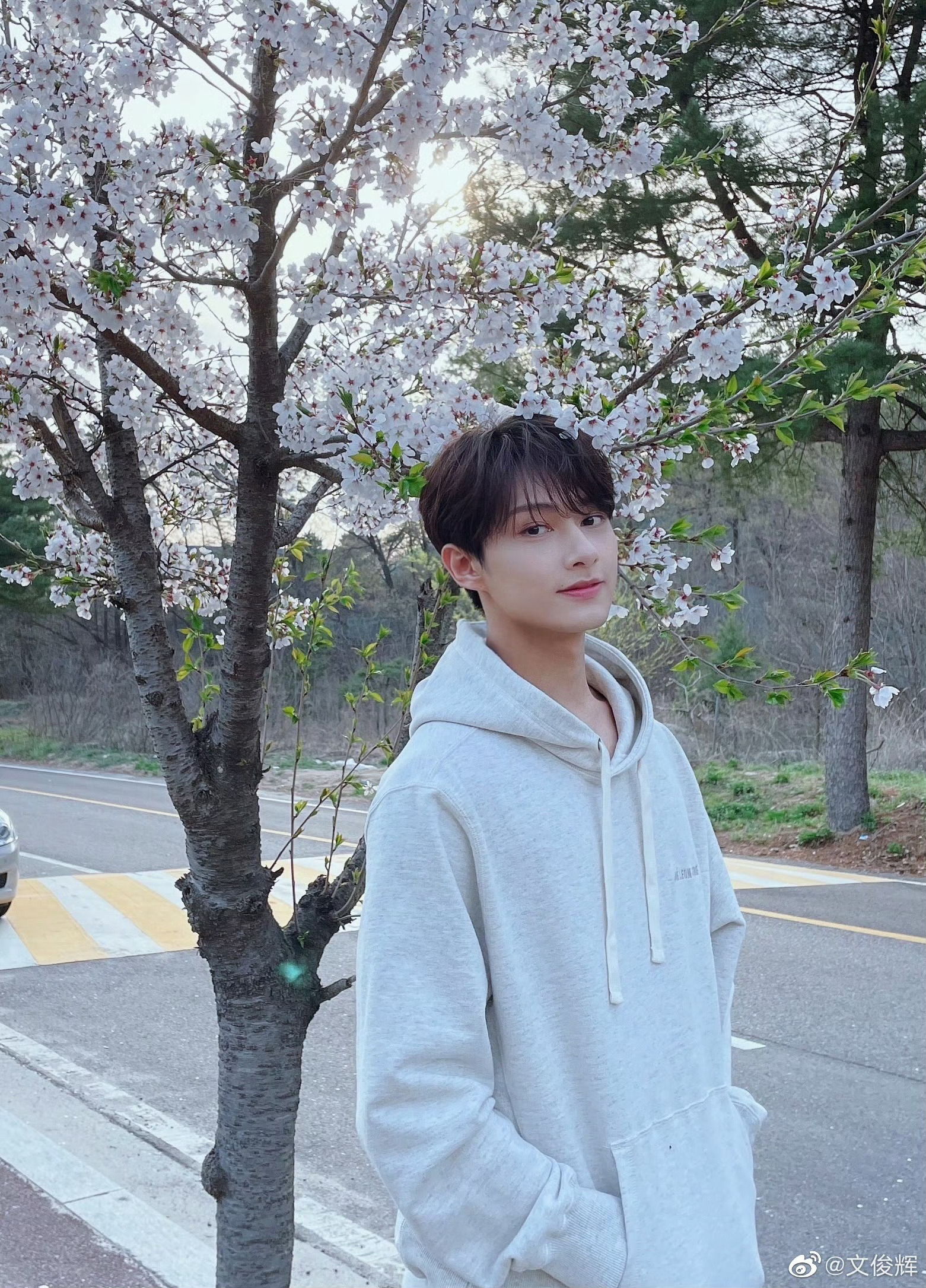文俊辉|春天的浪漫营业,接受来自帅哥的明信片,花儿与少年,好养眼!文俊辉樱花照