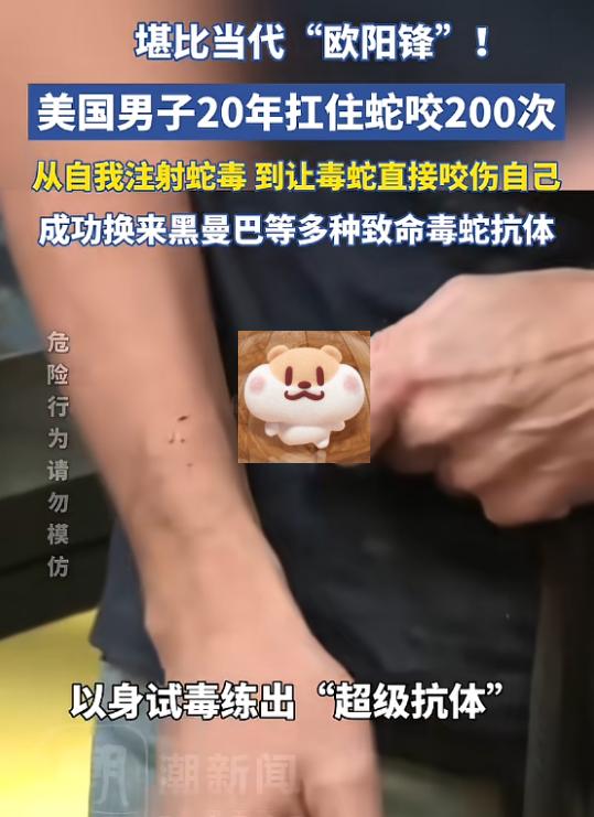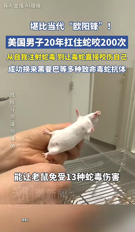 “活久见!”美国,一男子出于对毒蛇的好奇,开始少量注射蛇毒,并且慢慢加大剂量,最后还直接让毒蛇咬伤自己 美国一名男子因对毒蛇的痴迷,20年间主动让剧毒蛇咬伤超200次,从稀释蛇毒注射到直面毒蛇撕咬,哪怕经历瘫痪、截指仍未停下,最终血液炼出超级抗体,助力研发出能对抗19种致命毒蛇的实验性抗蛇毒血清。 这究竟是拿生命赌一把的疯狂举动,还是用肉身铺路的无私探索?这样的人体实验,又是否有可复制的价值? 对蛇类的喜爱,能让人执着到什么程度?这名美国男子给出的答案,超出了绝大多数人的想象。他打小就对蛇抱有浓厚兴趣,30岁时一次偶然的机会,他报名了采集蜘蛛和蝎子毒液的课程,也在这时迎来了自己的第一条毒蛇,从此踏入了与剧毒相伴的人生。 也是在接触毒液采集的过程中,他第一次听说了“自我免疫”的概念,简单来说,就是通过小剂量接触有害物质,让身体慢慢产生对抗这种物质的能力。 这个概念像一颗种子,在他心里生根发芽,让他萌生了一个大胆到近乎疯狂的想法:用自己的身体做实验,让血液产生对抗蛇毒的抗体。于是,一场以肉身为载体的“抗毒修炼”,就这样悄然开启。 古往今来,从不缺为了探索未知而以身试险的人,古代医者尝百草辨药性,用自己的身体验证草木的功效与毒性,和这名男子的初衷有几分相似,但前者是为了治病救人,后者起初更多是源于对毒蛇的好奇,这份好奇,也让他走上了一条步步惊心的路。 为了完成这场“人体实验”,男子在自家地下室打造了一个“毒蛇窝”,足足饲养了60条剧毒蛇类,这些平日里让人闻之色变的致命生物,成了他实验的“原材料”。 他的试毒之路并非一步登天,而是从最基础的稀释蛇毒注射开始,一点点增加毒液的剂量,让身体慢慢适应,到了后期,更是干脆省去注射的步骤,直接让毒蛇咬伤自己,力求让身体接触最纯粹的蛇毒,激发出更强的抗体。 但蛇毒从不是温驯的“练手工具”,每一次接触,都是与死神的擦肩而过。有一次,他在采集埃及眼镜蛇毒液时,左手中指不慎被咬伤,短短一小时后,又被孟加拉眼镜蛇咬穿肱二头肌,双重剧毒的侵袭让他当场全身瘫痪。 万幸的是,动物园及时送来抗蛇毒血清,才将他从鬼门关拉了回来。这场生死危机,没有浇灭他的执念,反而让他意识到,仅凭一腔热血远远不够,于是他开始自学免疫学知识,翻看专业书籍,让自己的“人体实验”变得更系统。 即便有了理论支撑,危险依旧如影随形,长期的毒液接触让他的身体不堪重负,最终因为中毒过深,不得不截掉部分手指,这场持续了20年的以身试毒,才终于按下了停止键。 200多次的毒蛇咬伤,每一次都可能是最后一次,这样的经历,不是一句“勇敢”就能概括,更多的是常人无法理解的偏执,这份偏执,让他付出了身体的代价,却也让他的身体发生了意想不到的变化。 没人能想到,这场始于好奇的疯狂实验,最终会带来如此珍贵的科学成果。经过20年与蛇毒的反复博弈,男子的血液中成功形成了两种超级抗体,这两种抗体,就像是身体为自己打造的“抗毒铠甲”,能有效对抗蛇毒的侵袭。 科学家们发现了这一珍贵的成果后,将这两种超级抗体与一种毒素阻断药物混合,开展了相关实验,实验结果让人惊喜:这款研发出的实验性抗蛇毒血清,能完全保护小鼠免受13种毒蛇的伤害,对另外6种毒蛇也能提供部分保护。 而这19种毒蛇,涵盖了眼镜王蛇、黑曼巴蛇、太攀蛇等全球最致命的种类,意味着这款血清一旦研发成熟,将能在全球范围内拯救无数被毒蛇咬伤的生命。 从个人的好奇探索,到惠及全球的科学成果,这场看似疯狂的“人体实验”,意外走出了一条不一样的路。在过去,抗蛇毒血清的研发往往耗时长久,且针对性较强,一款血清大多只能对抗一种或少数几种蛇毒,而这次的成果,实现了对多种致命蛇毒的交叉保护,为抗蛇毒血清的研发开辟了新的思路,这也是最让人感到欣慰的地方。 这名美国男子用20年的时光,以身体为代价完成了一场特殊的实验,从痴迷毒蛇的爱好者,到为抗蛇毒研发提供关键线索的人,他的经历充满了争议,却也带来了实实在在的价值。 未来,随着科学技术的发展,或许我们不再需要用如此极端的方式研发抗毒血清,能通过更安全、更系统的科学手段实现突破,但那些为了探索未知而敢于迈出第一步的人,都为科学的进步埋下了微光,这份勇气,值得被看见,却绝不该被模仿。