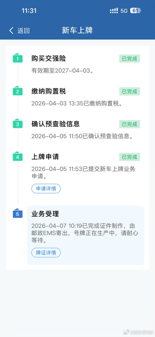 现在新车上牌真的好幸福…这次我还在中山买车,要上广州牌去年都得跑一趟广州的车管所,报废一整天这次只需要打开12123,免验车了上传合格证照片和指标书编号直接进入选号,搞定后就什么都不用做等待行驶证、登记证和牌照抵达…简单到跟点外卖一样,我服了…好爽啊啊啊啊啊什么时候二手车上牌也能这样!!!一辆铂智7