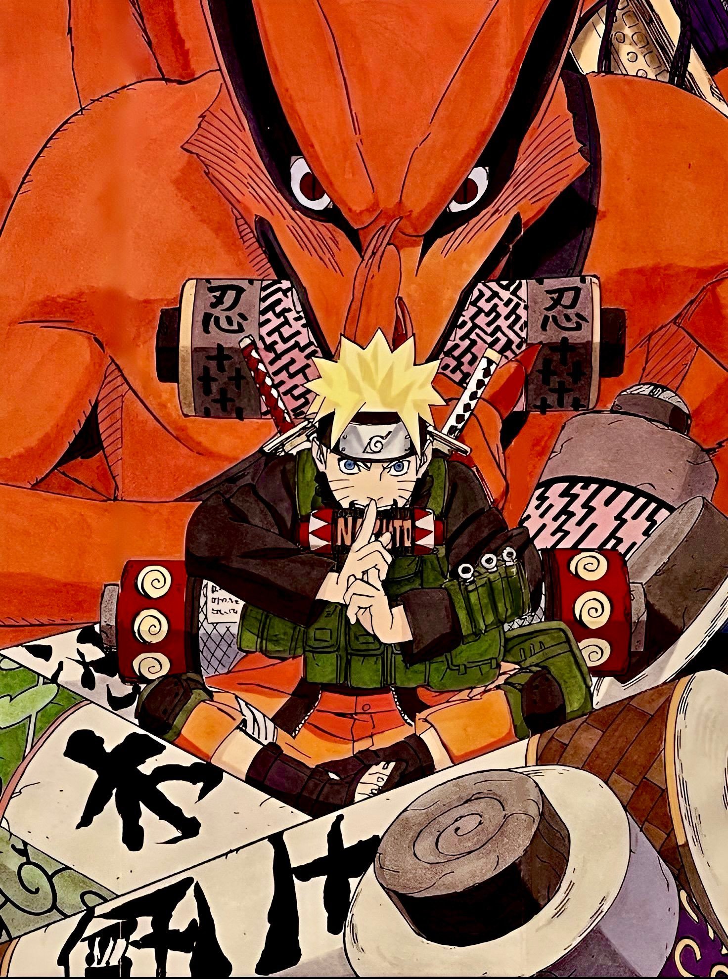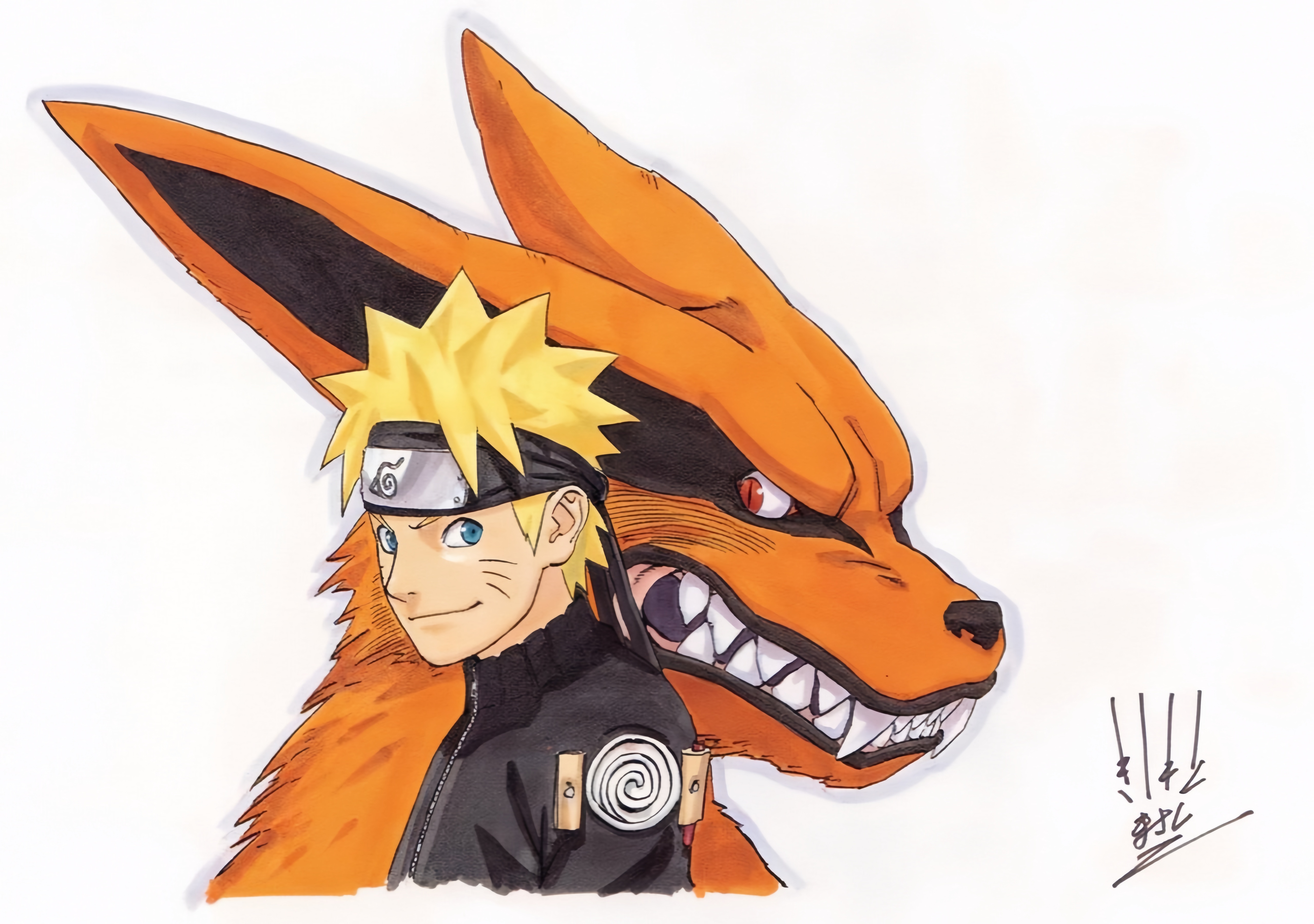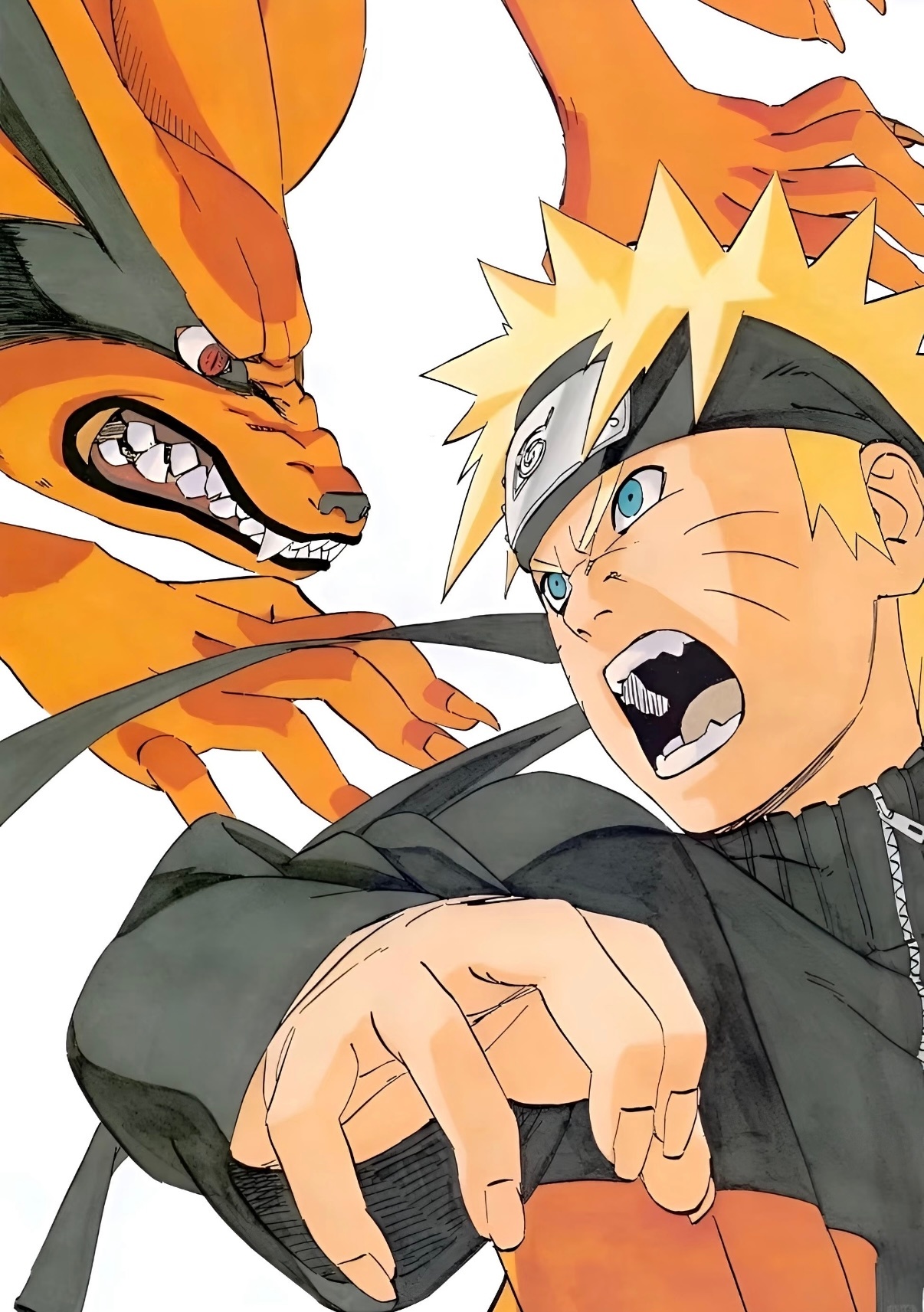 岸本绘制的一些鸣人和九喇嘛同框图火影忍者漩涡鸣人九喇嘛