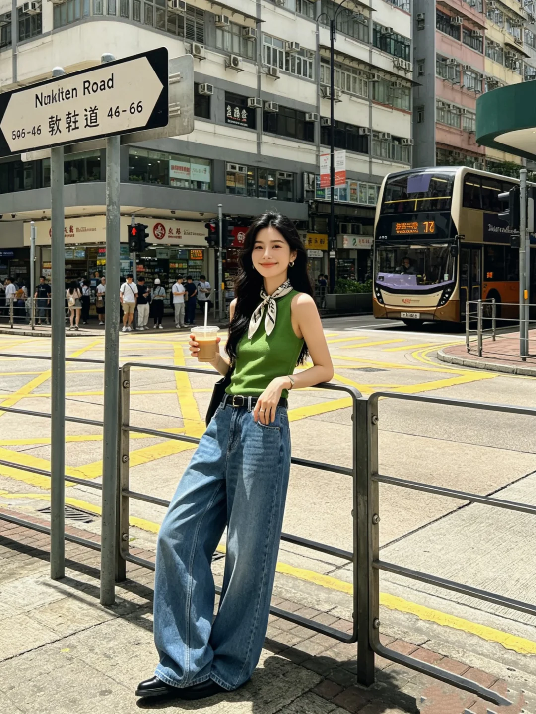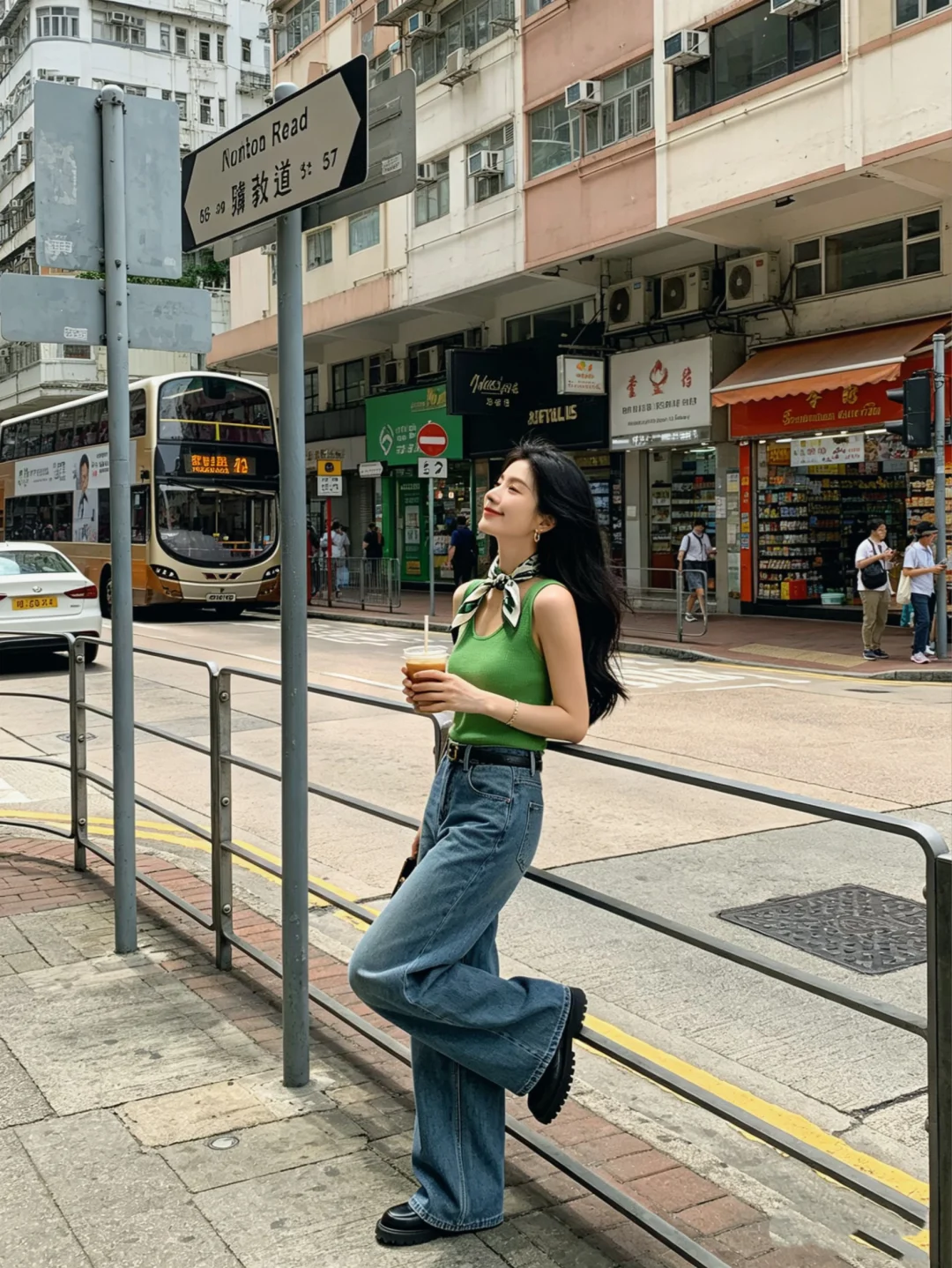 港风穿搭 走走停停系列 街拍穿搭 出行穿搭 比美照更有杀伤力的是 背心 牛仔裤 丝巾 辣妹穿搭 ootd穿搭