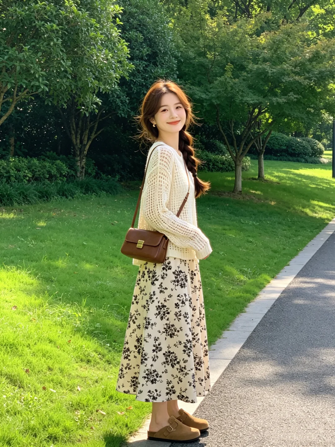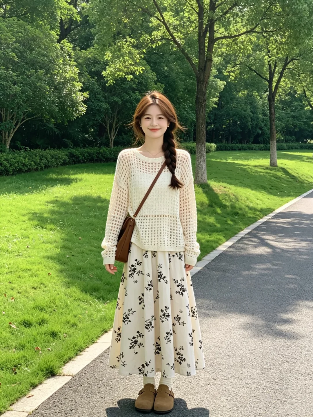 温柔穿搭风 茶歇风穿搭 早春出游这么穿 雪纺裙搭配 镂空针织衫 碎花裙搭配 罩衫搭配