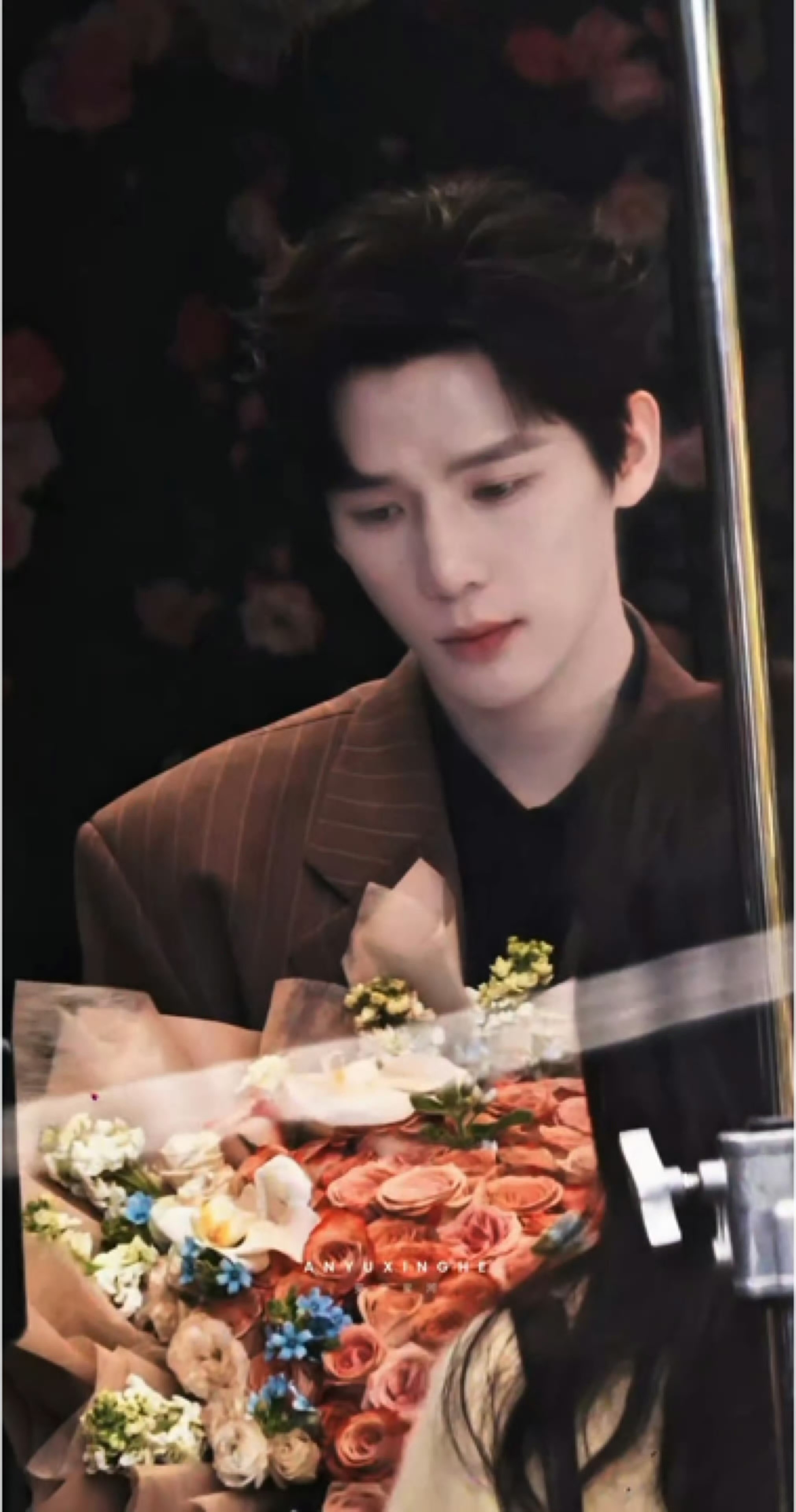 王安宇捧花看人好深情穿着大衣手捧鲜花深情地看着你的王安宇,秒秒钟沦陷,深情的帅气