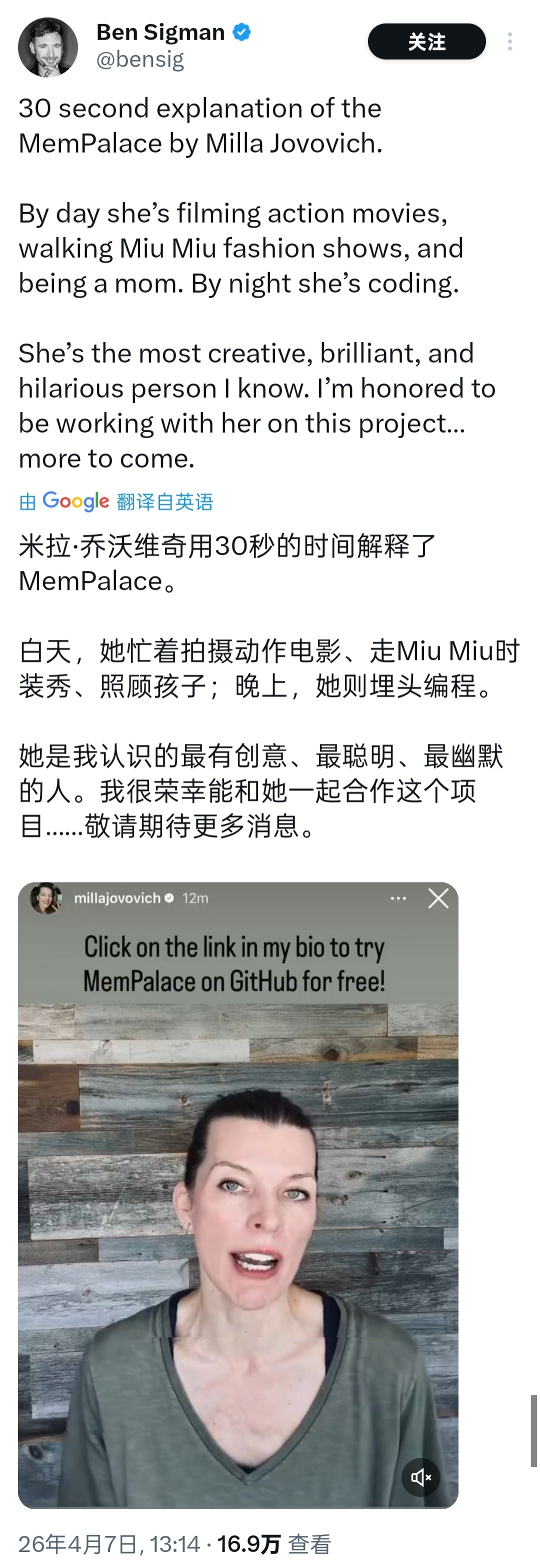 太厉害了吧,《生化危机》系列主演米拉·乔沃维奇,也就是爱丽丝,开发了一款很牛的AI产品。